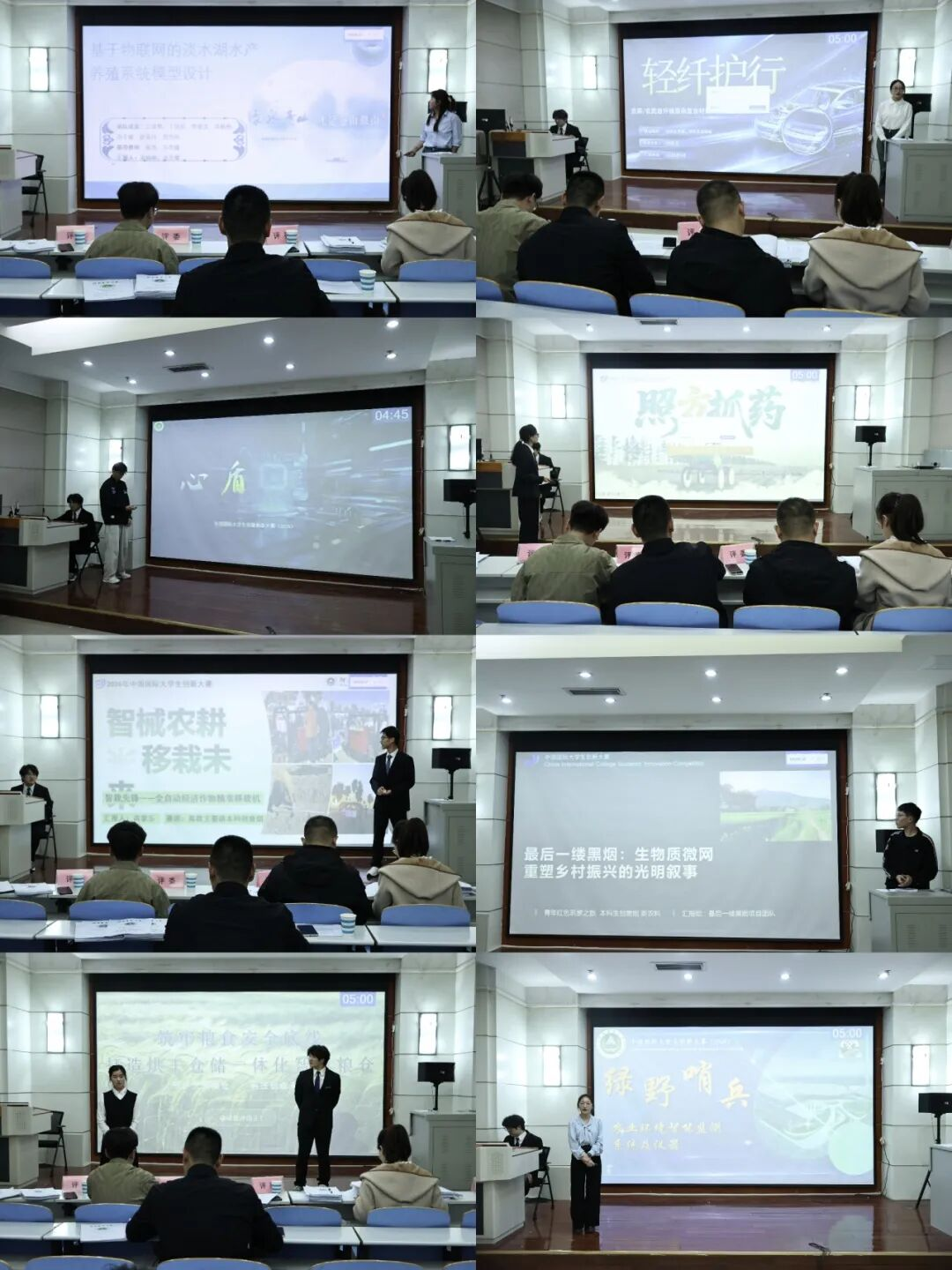 于文化路校史馆一楼报告厅成功举办2026年中国国际大学生创新大赛院级选拔赛,院团委书记李锦、团委副书记梁凯凯、兼职辅导员衡星和王天慧担任评委,共计16支参赛队伍参加此次比赛。