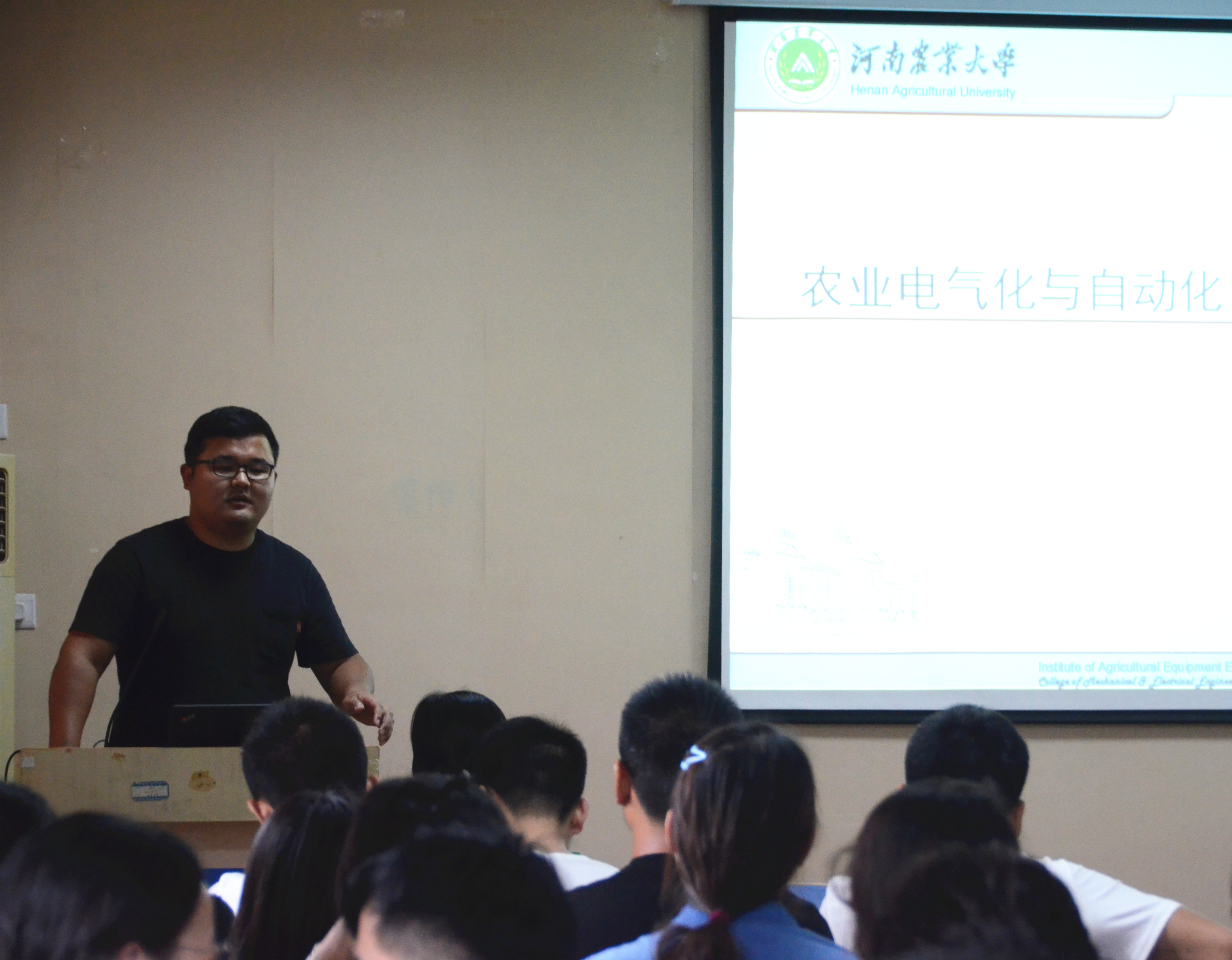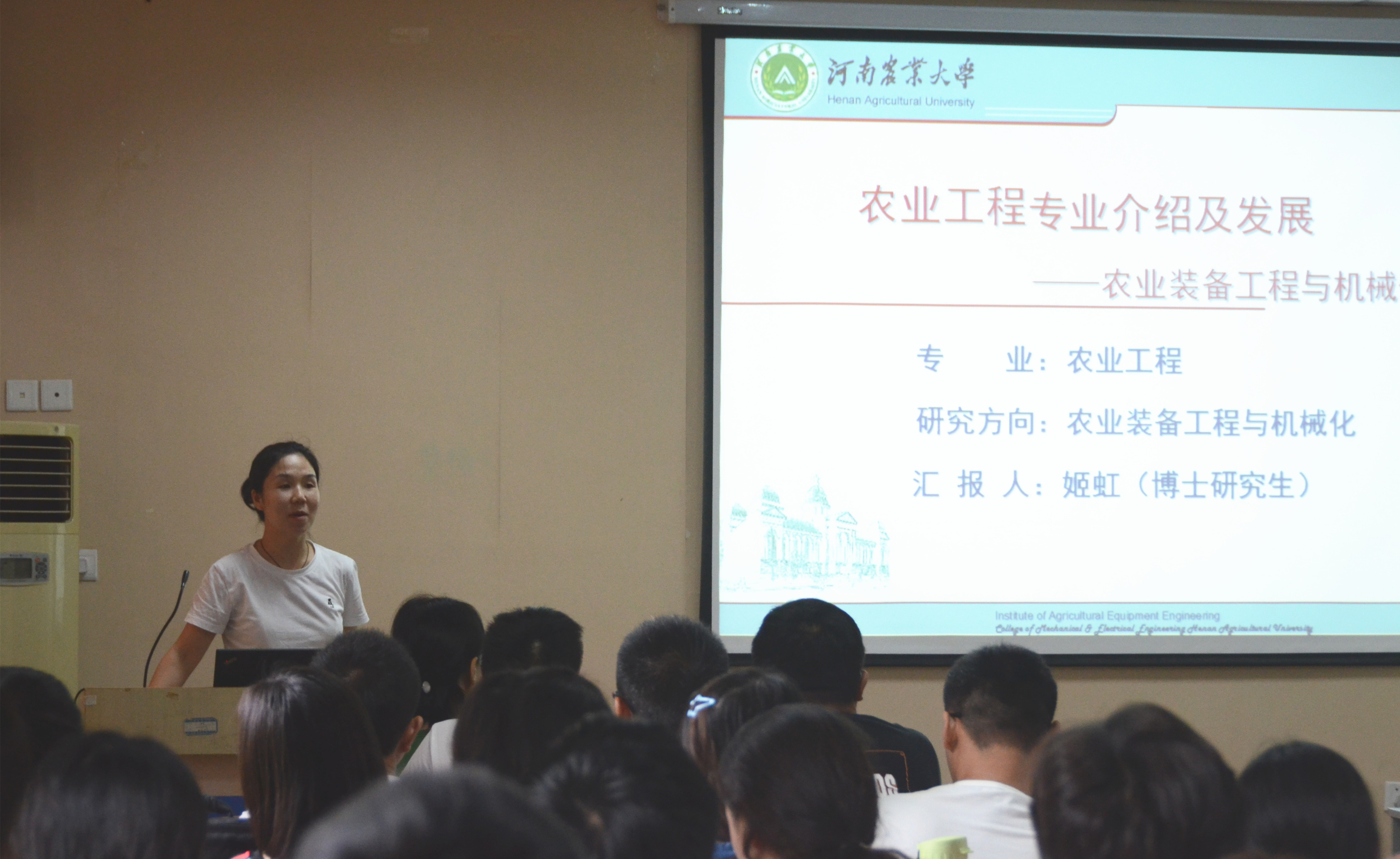 农业机械化工程方向的师资队伍和各位老师的在研课题,阐述了智能农机装备的发展现状,展望了无人机、农业机器人、精细农业为代表的智能化农业机械的发展前景,并表示现代农业大有可为,号召2019级研究生充满信心,勤奋学习,在专业领域大显身手。
