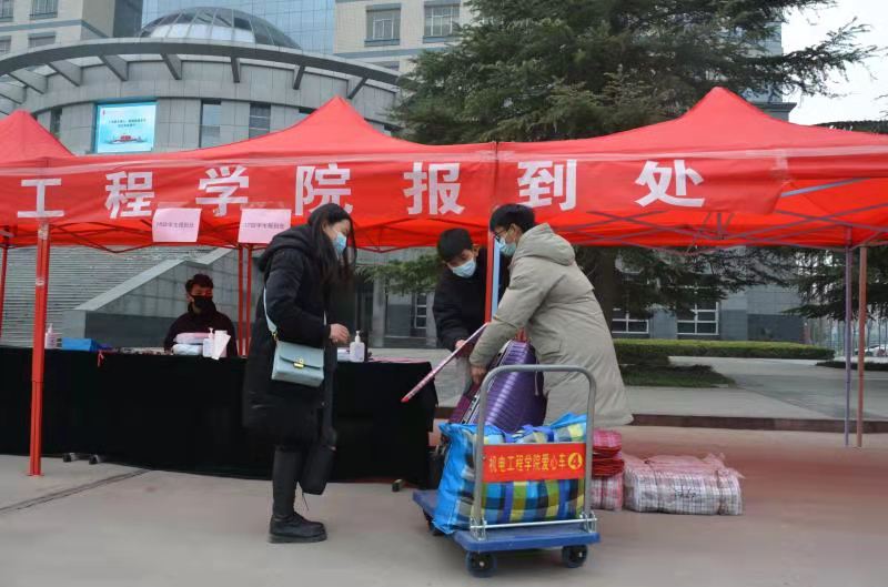 特设文化路校区、二区学生公寓、桃李园学生公寓三个报到点,并安排大批志愿者协助学生返校工作,最大程度地为学子们返校提供了便利。
