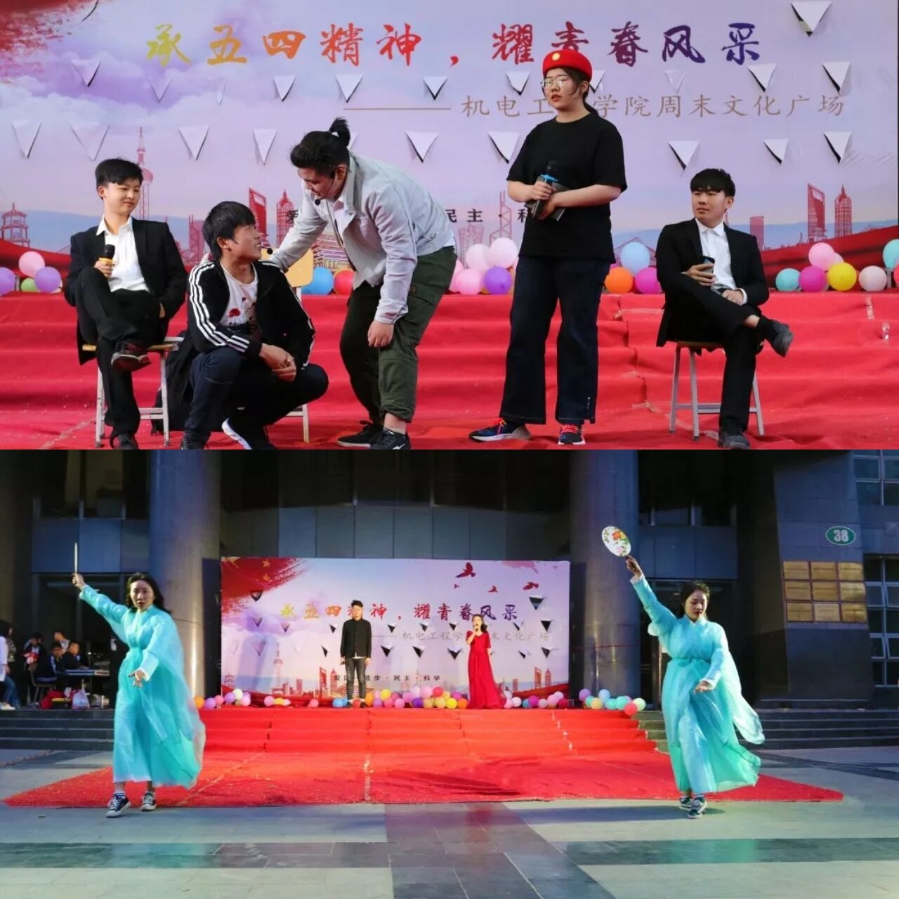 学生课余文化生活、提高实践能力和文化艺术素养的同时,将青年学子争做时代先锋的五四精神、浓烈的爱国之情融入节目之中,通过各种形式表现出来。进一步加深了学院青年对爱国、进步、民主、科学的五四精神的理解,激励他们以无私奉献、敢为人先的五四先驱为学习榜样,牢记五四那段峥嵘历史,努力学习、全面发展,争做建设祖国美好新时代的预备军,成为建设中国特色社会主义的可靠接班人。