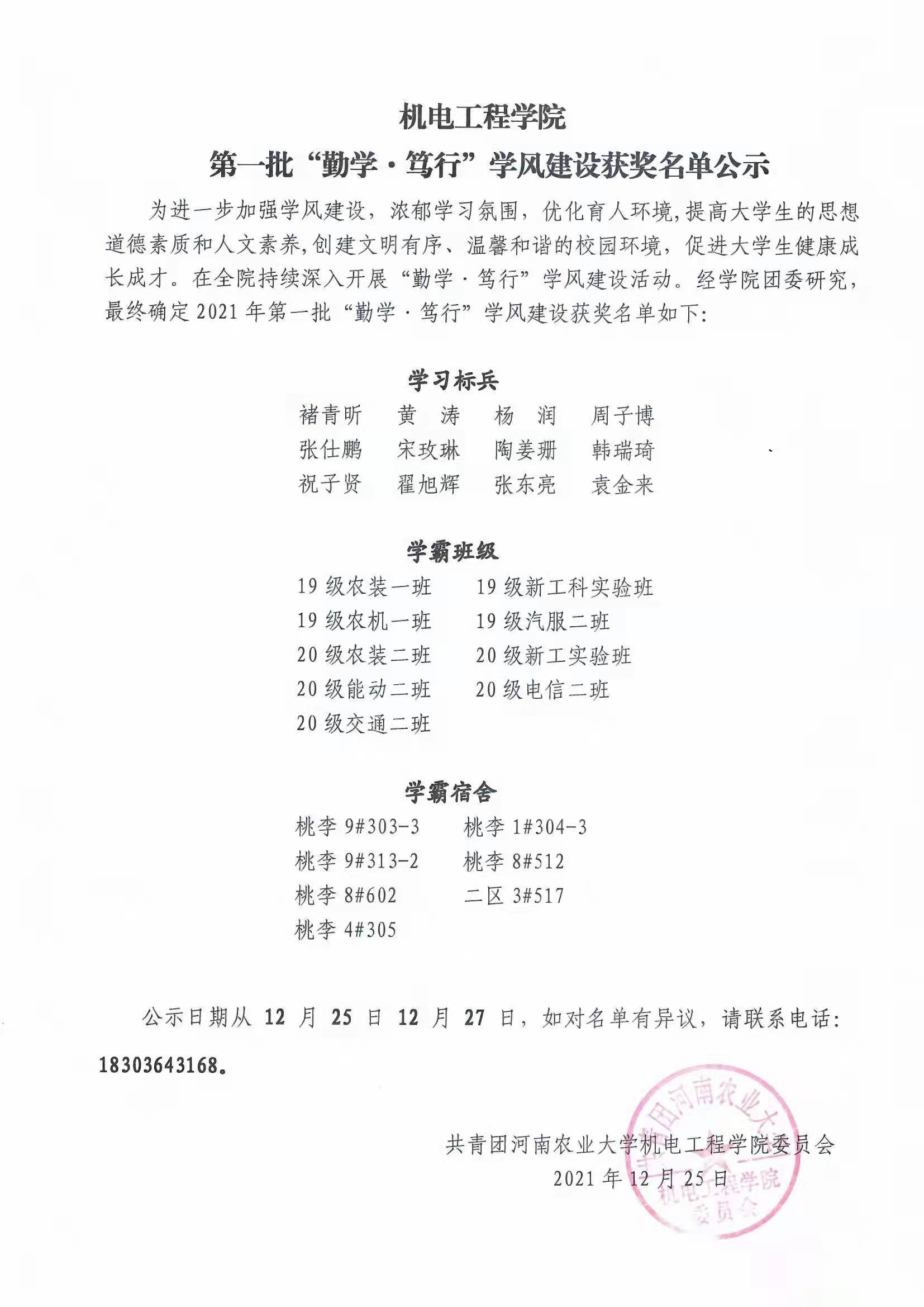为进一步加强学风建设,浓郁学习氛围,优化育人环境,提高大学生的思想道德素质和人文素养,创建文明有序、温馨和谐的校园环境,促进大学生健康成长成才。在全院持续深入开展“勤学·笃行”学风建设活动。经学院团委研究,最终确定2021年第一批“勤学·笃行”学风建设获奖名单如下: