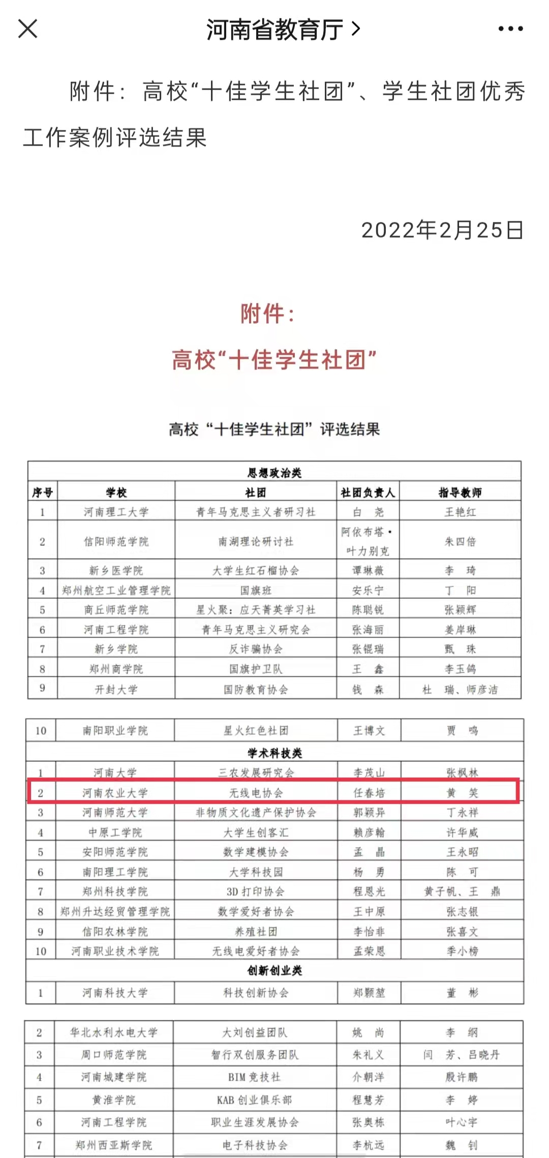 喜报!色情小说网 无线电协会荣获全省高校“十佳学生社团”荣誉称号