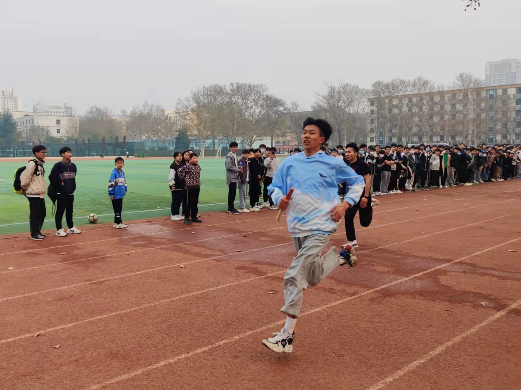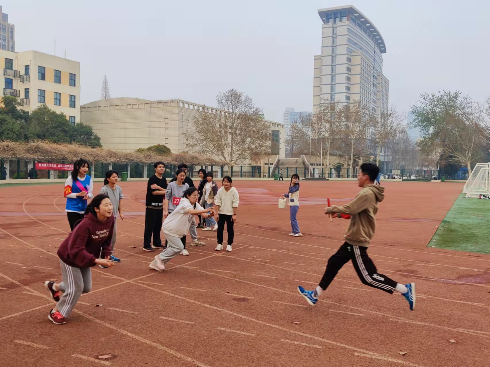 进行男女接力友谊赛,来自20、21级的20名运动员,在红白跑道展现飞一般的速度,现场欢呼声、呐喊声响彻云霄。
