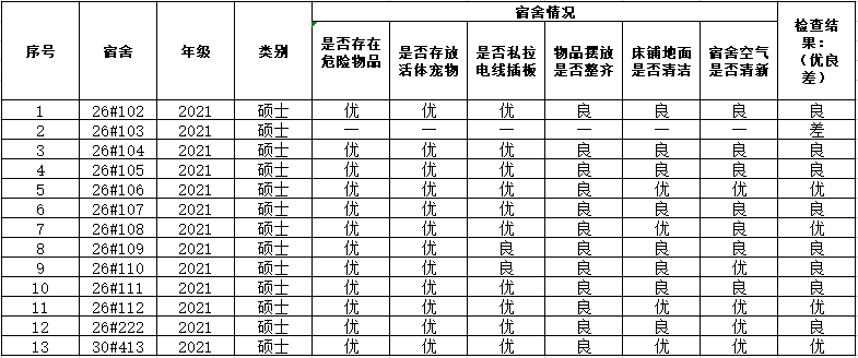 3月15日宿舍安全卫生检查结果