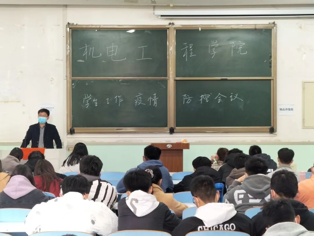 于文化路校区工程楼102教室组织召开学生工作疫情防控会议。院团委书记黄笑,团委副书记徐捧丽,年级辅导员胡亭亭、王晓楠出席会议,全体班长支书参加会议。
