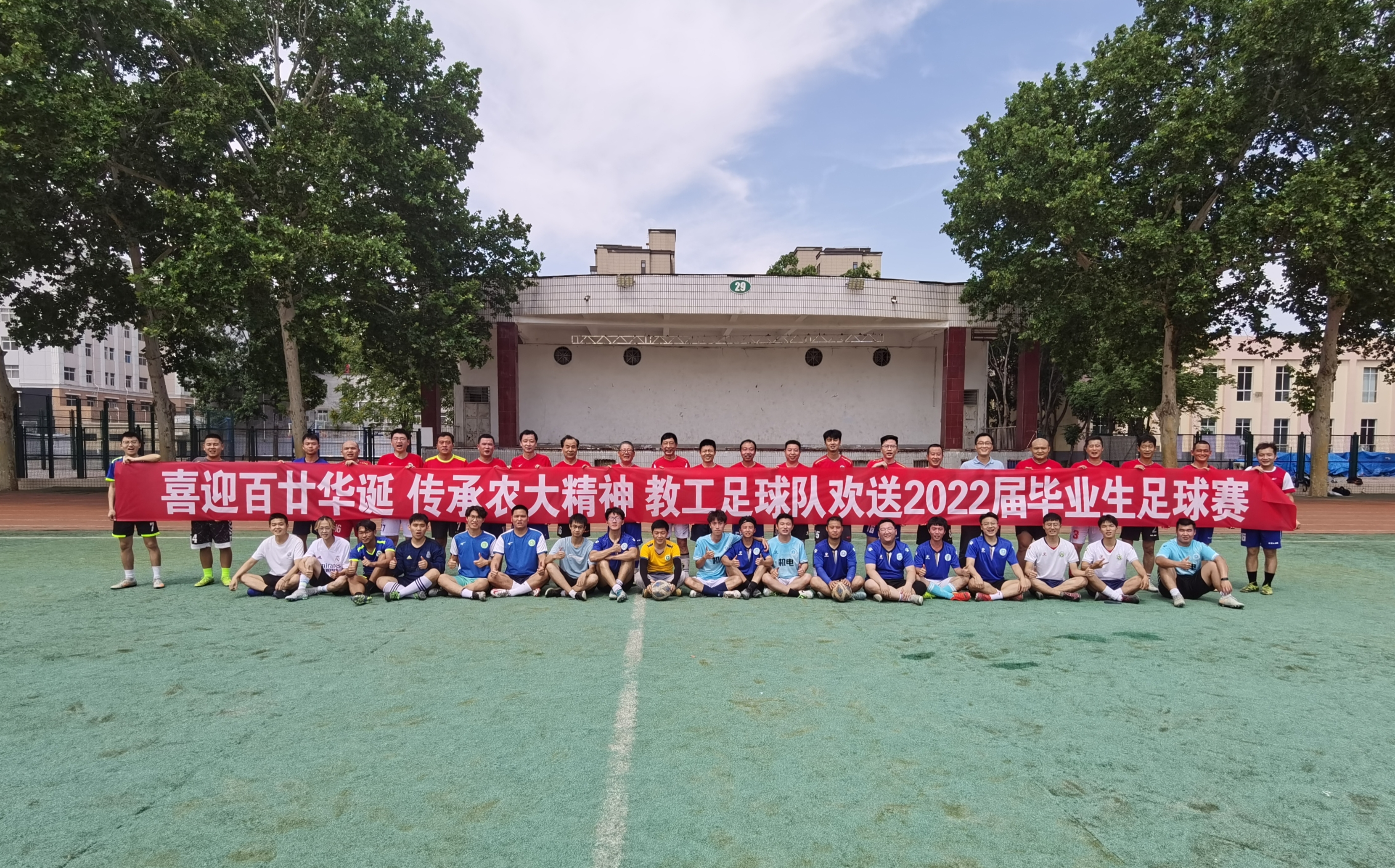 于文化路校区操场举行“喜迎百廿华诞,传承农大精神”欢送2022届毕业生师生足球赛。参赛队伍由色情小说网