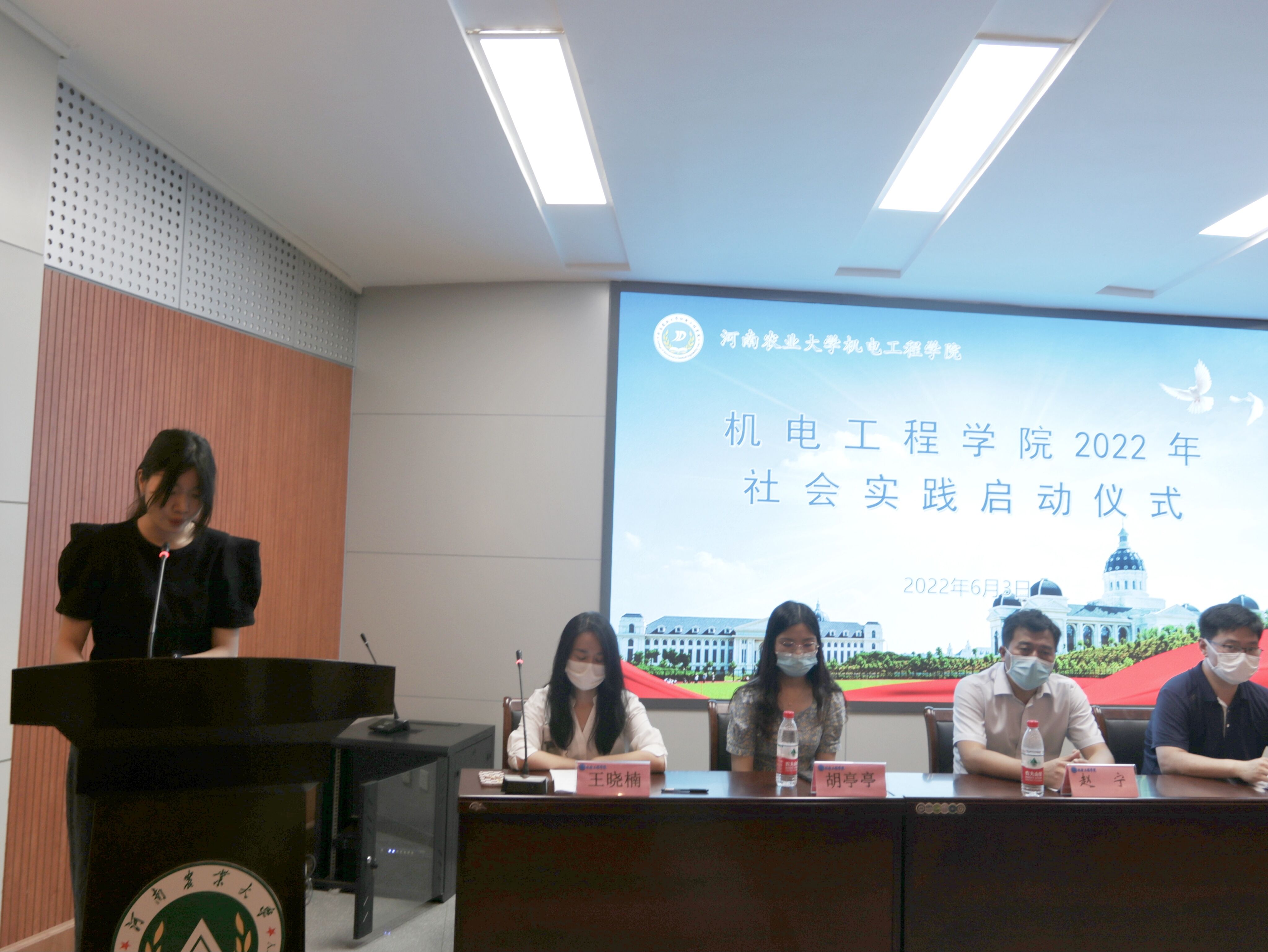 紧接着,暑期社会实践团队代表靳卓怡进行发言,并向全体实践队员们发出倡议,希望各位同学能够积极投身到暑期社会实践活动中去,以饱满的精神、昂扬的斗志,在社会实践中经历磨练、增长经验、收获成长,让青春在祖国和人民需要的地方绚烂绽放。