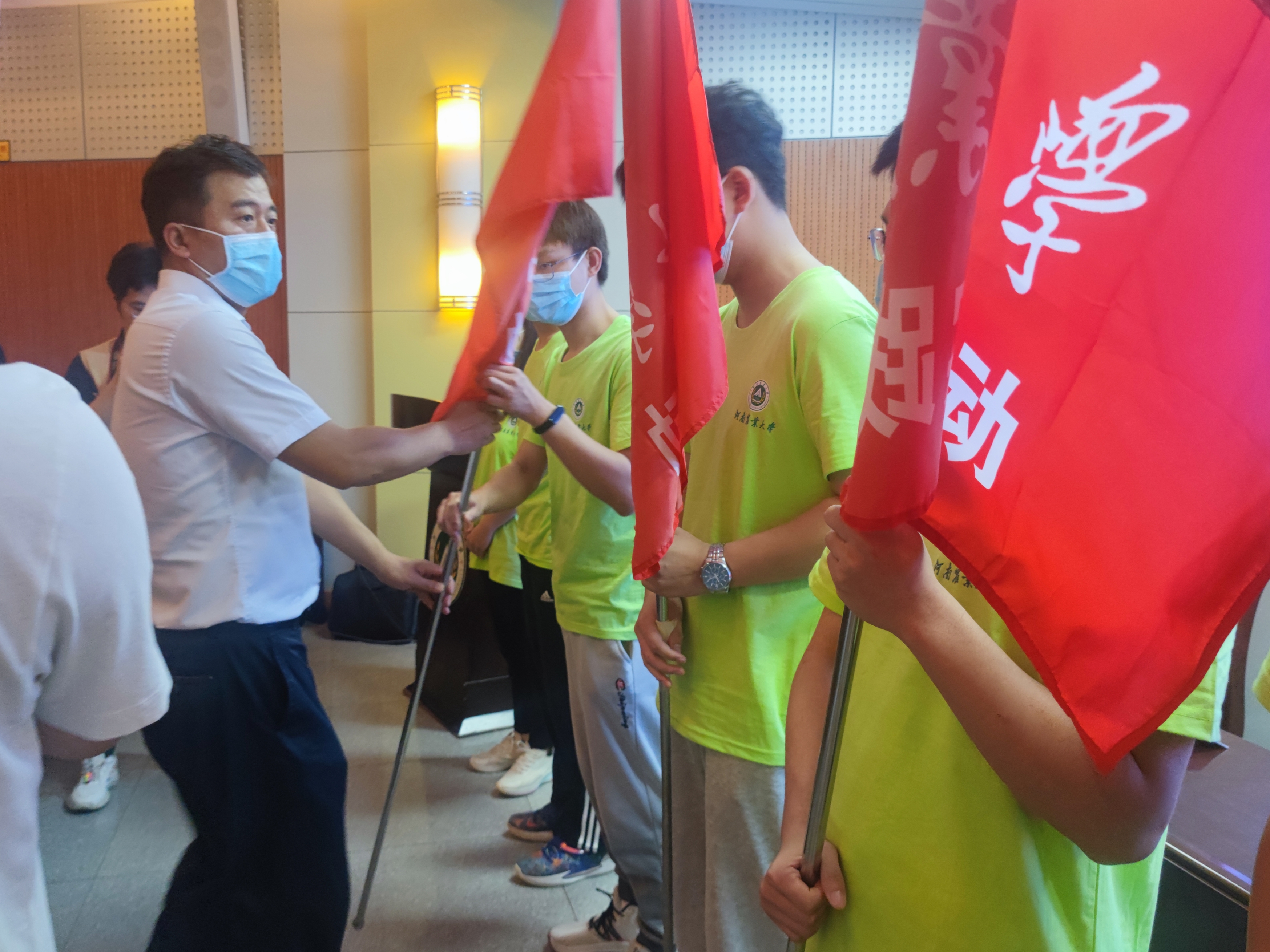 社会实践团队代表授旗并合影留念。他表示,大学生是祖国未来建设的主力军,大学生的思想引领着整个社会思潮,暑期社会实践既是大学生接触社会、服务社会、了解社会的重要过程,也是课堂教育的有效补充和延伸,希望各团队成员能够珍惜此次实践机会,躬身实践、深入基层,为实现中华民族伟大复兴贡献青春力量!