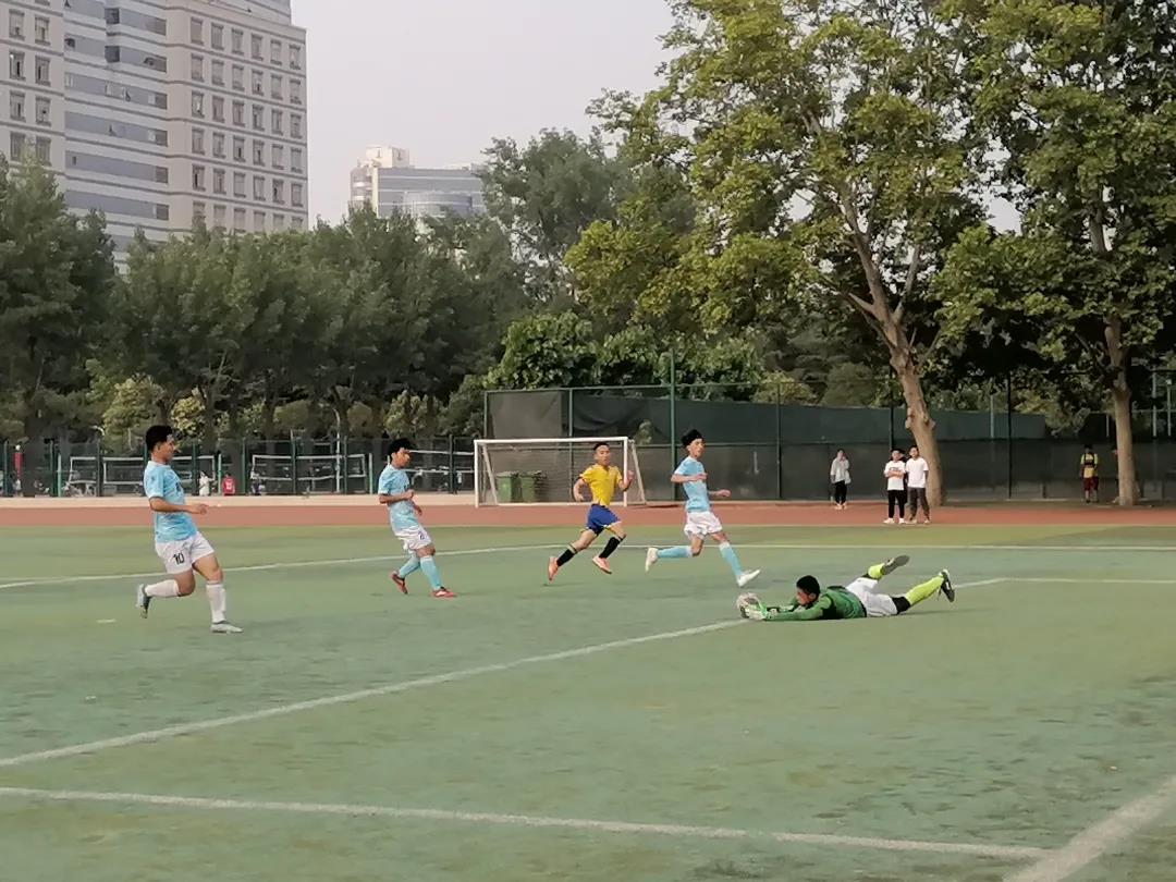 斜阳映着他们稚气未脱的面庞,微风吹过脸庞将落未落的汗滴。两院同学们都蓄势待发,目光所至皆是小小的足球,耳畔静听俱是清脆的哨响。夏日不灼,微风送凉,午后的足球场,是运动健儿们驰骋的乐园。他们在绿茵场上的相遇,或是为了共同的爱好,或是为了学院的荣誉,却都不遗余力地展现着,自己对足球的执着与夺冠的自信。球员们你来我往,互有攻防。一次次势大力沉的射门,守门员一次次全力以赴地扑救,都是对自己所肩负的职责认真以对。赛场上,球员们奋勇拼搏,始终保持着夺冠的信念,一次次精准的传球,是团队默契配合的体现,一次次巧妙的过人,是个人精湛技术的展现。