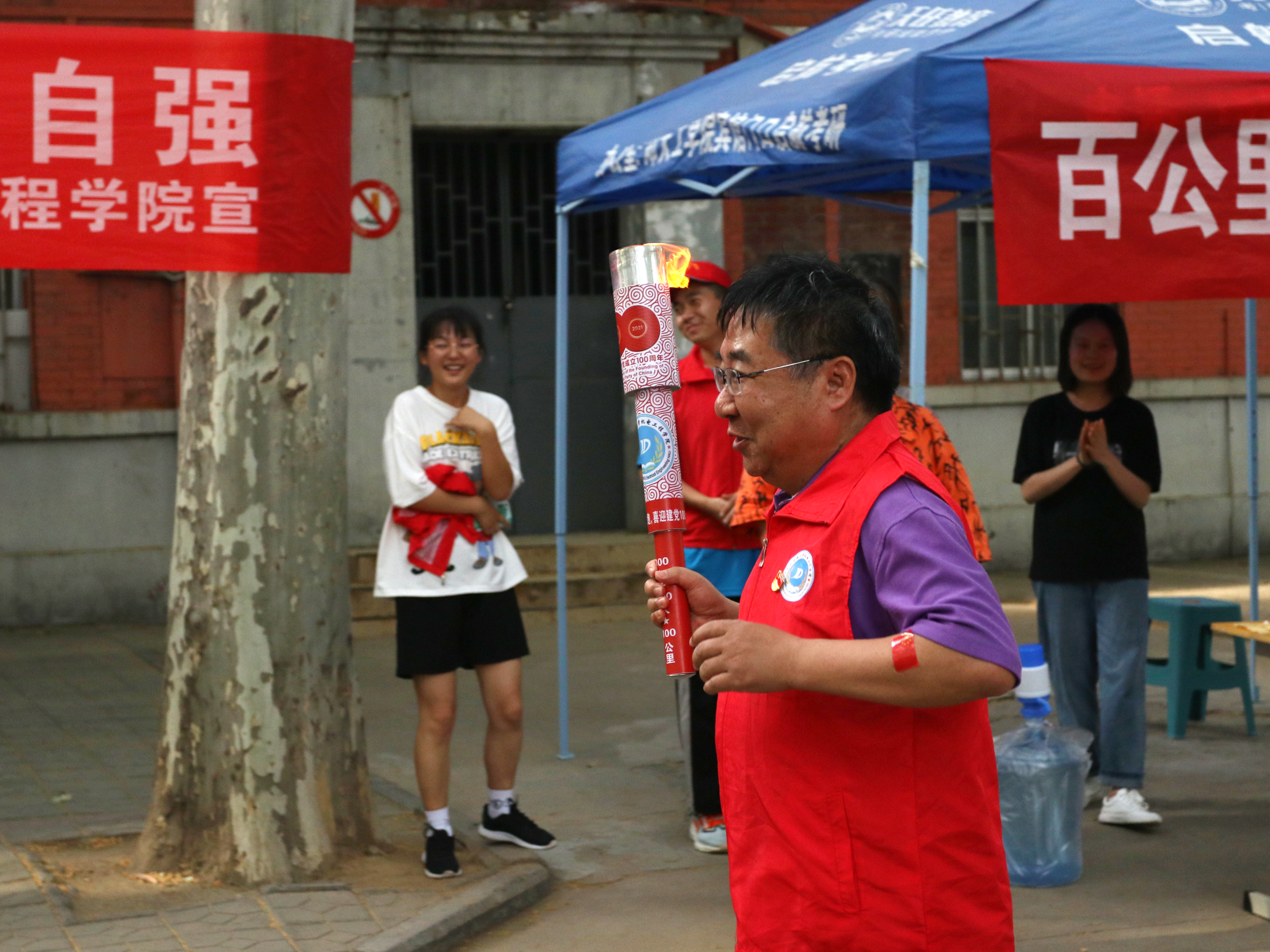 在简单的热身运动之后,校党委副书记、工会主席李成吾点燃第一棒火炬,正式开启了此次接力跑。活动过程中,师生们手持火炬,热情满溢,以奔跑之姿,展现师生风采,以青春之名,为建党百年献礼。手中的火炬一次又一次的传递,如同百年来为祖国和人民做出无私奉献的先辈英烈们的革命精神被一代又一代的接力传承下去。