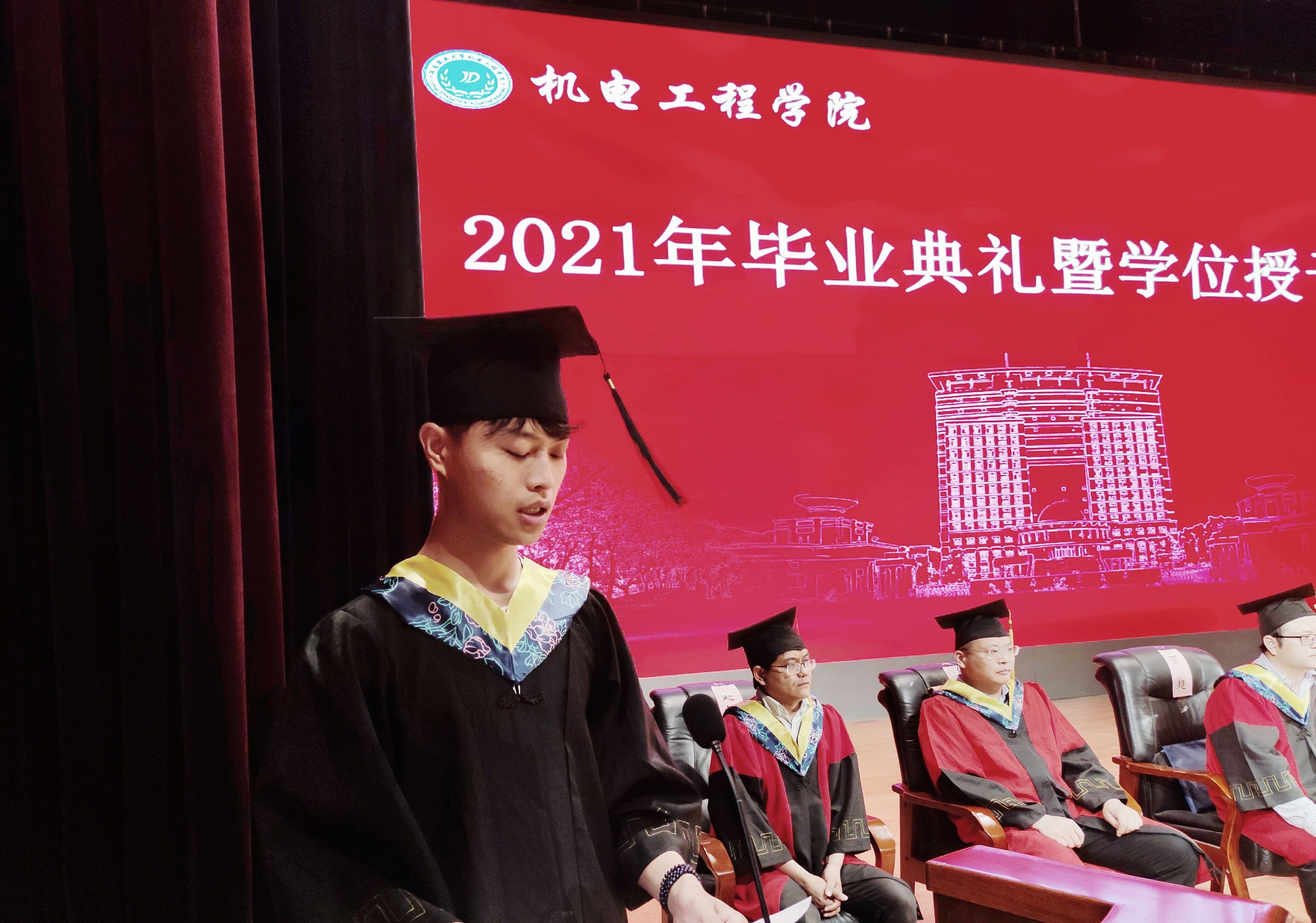 毕业生代表孟奎向学校、学院进行道别,他讲到,日后大家无论是升学深造还是投身工作,都应该保持一颗热爱生活、积极向上、懂得感恩的心,勿忘学校、学院对自己的栽培,努力成为对他人、对社会有用的人。最后,他代表全体毕业生衷心地祝愿母校和学院发展蒸蒸日上,再创辉煌。