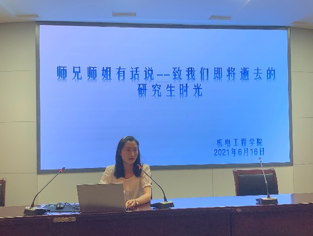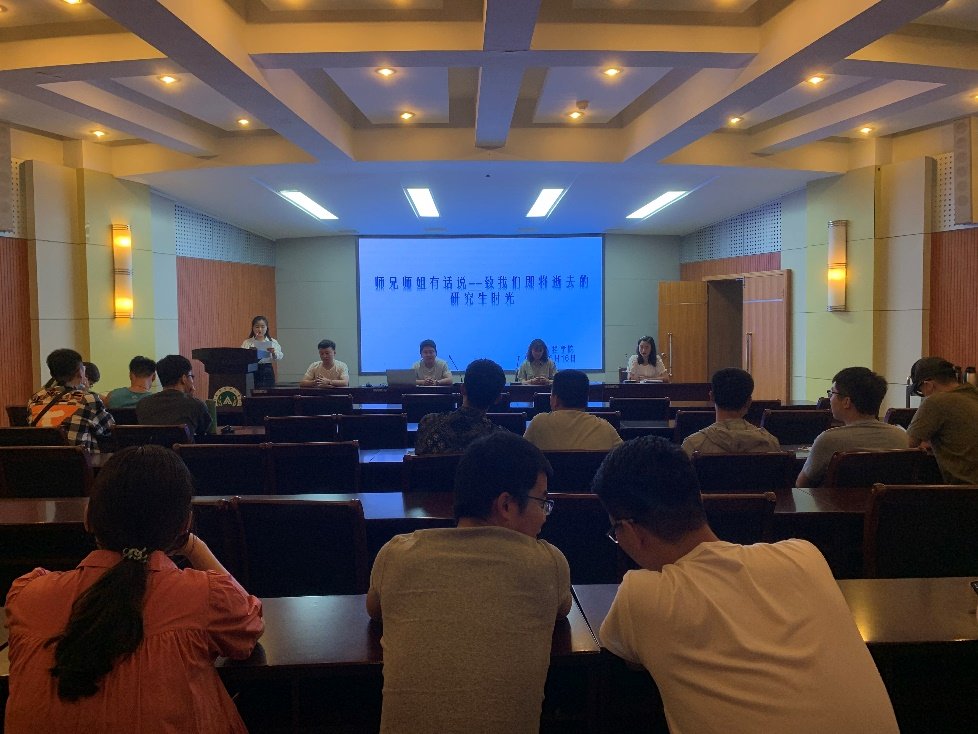 研究生会承办的第二季“师兄师姐有话说——致我们即将逝去的研究生时光”优秀毕业研究生经验分享座谈会在大礼堂一百人报告厅举办。邀请学院2021届优秀硕士毕业生代表岳田、李冬贤,优秀就业硕士毕业生代表吴亚文、王晨,向20级研究生们分享科研经验、就业心得和人生感悟。
