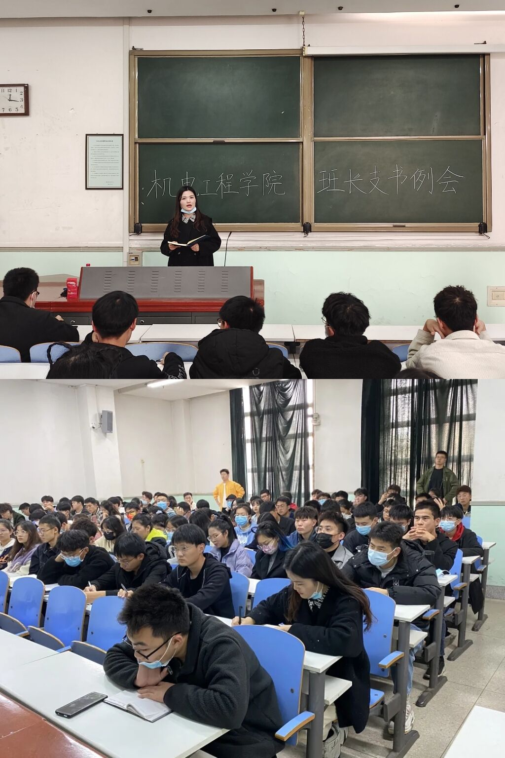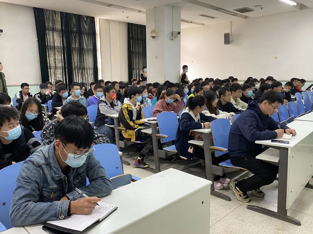 疫情防控教育大会暨学生干部培训会,院团委书记黄笑,辅导员胡亭亭、王晓楠出席会议,全院主要学生干部参加会议。