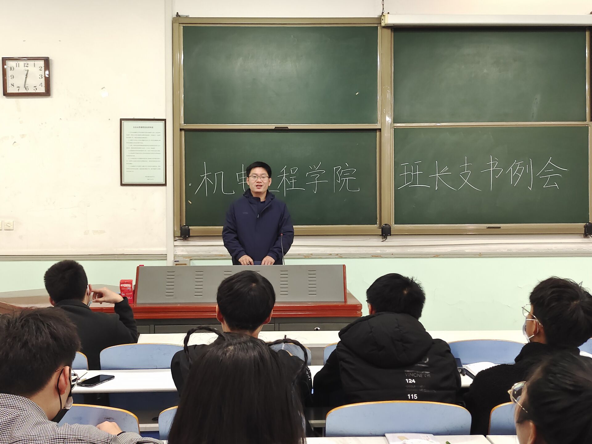 最后,黄笑就学院疫情防控要求、学生日常管理、班级学风建设等方面做出了进一步的补充说明。他指出21级学生干部要尽快承担起自身责任,做好与学院的对接工作。要求各班学生干部督促班级同学严格遵守学院的各项制度,营造良好的学习氛围;加强对班级同学的网络安全教育,提高防范意识;尽快召开班级会议,传达学院近期的各项工作安排。