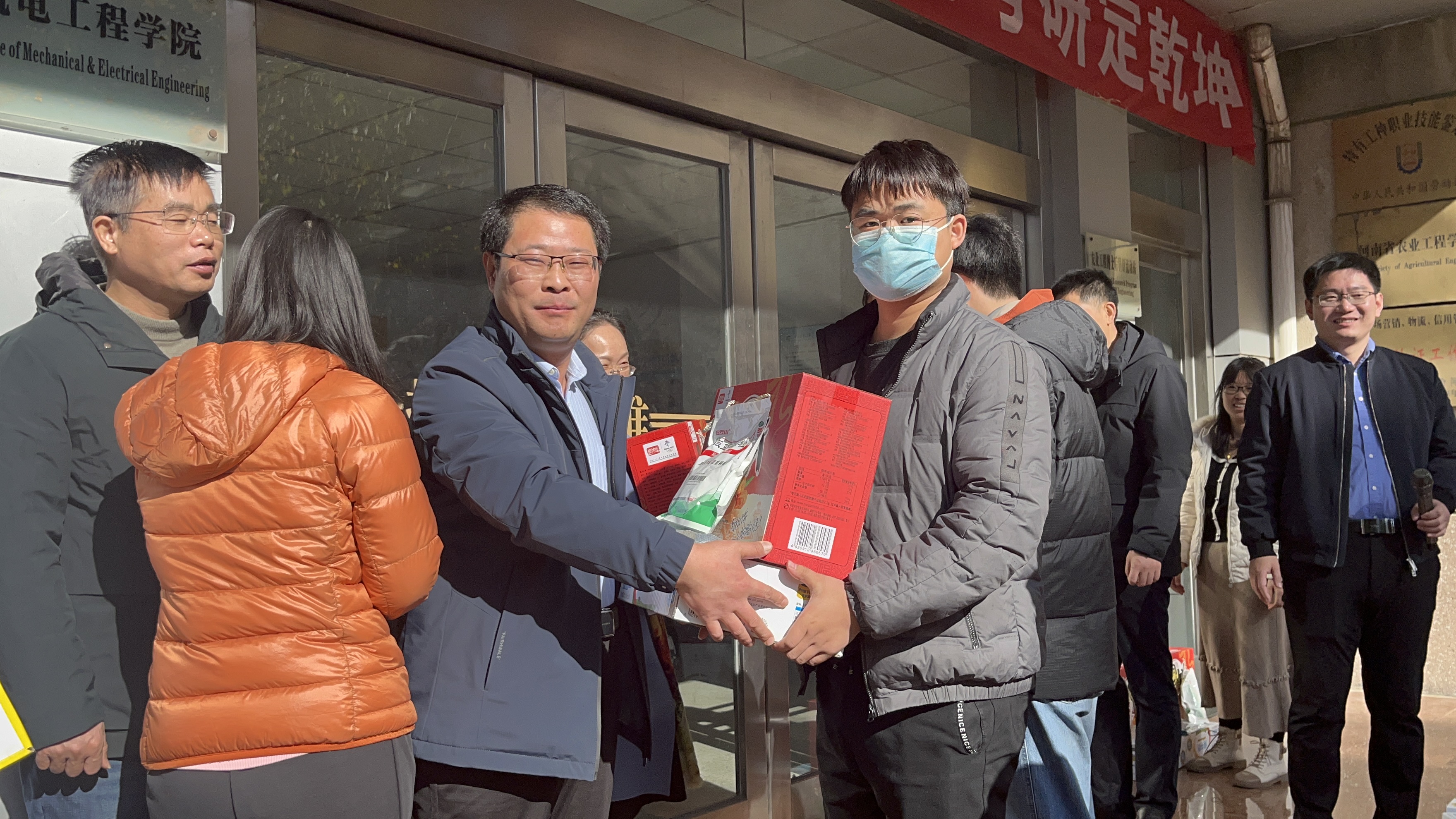 活动期间,在场同学合唱起歌曲《我相信》并重温了院训,表示一定不辜负学院和老师们的期望,在最后的这段日子里,竭尽全力复习备考。随后,同学们自行、有序进行排队,各位老师亲自为他们送上学院精心准备的牛奶、面包、口罩、板蓝根等考研助力物品,并逐一送上祝福,表达了学院对全体考研学子的衷心祝福和殷切期盼。