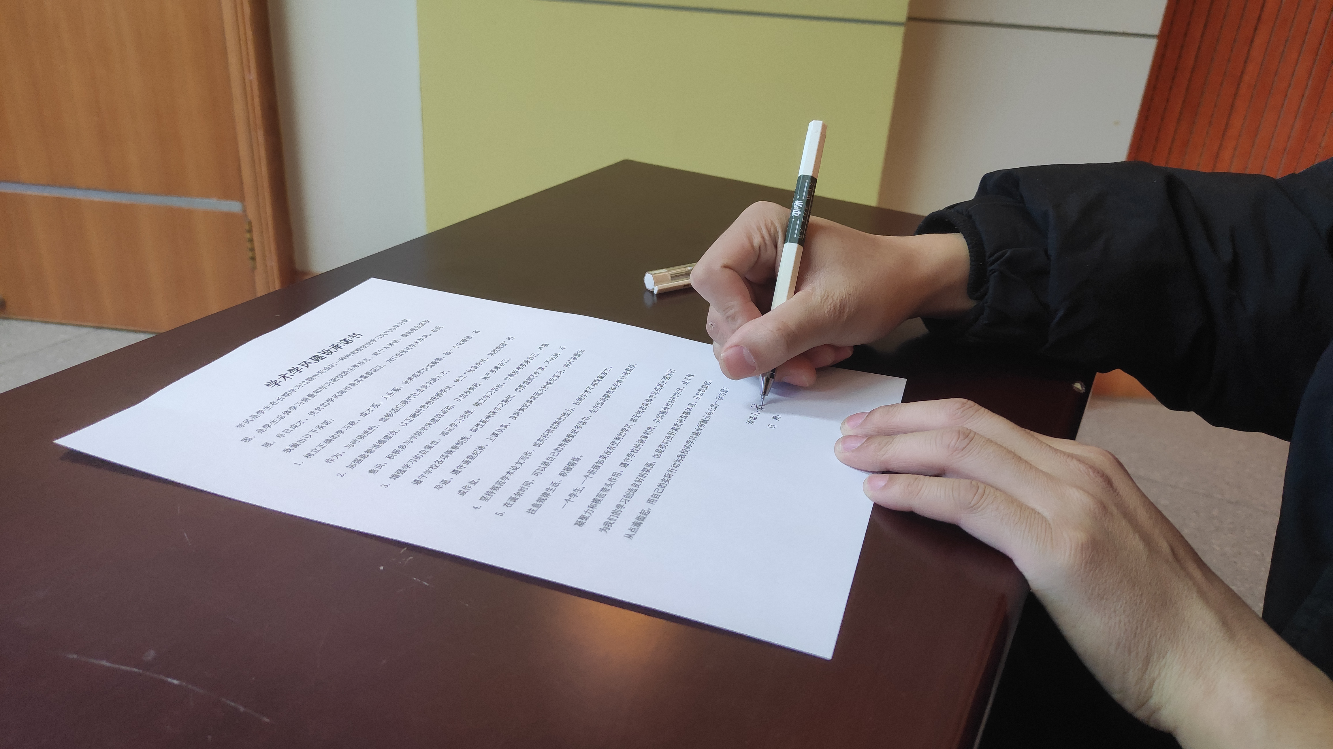 活动伊始,研究生会主席肖鑫瑞向同学们发出四点号召。第一,要树立正确的学习观、成才观、人生观、世界观和价值观等。做一个有理想、有作为、与时俱进的、能够适应现代社会需求的人才。第二,肖鑫瑞提倡大家加强思想道德建设,以正确的思想统领学风。树立“优良学风,从我做起”的意识,积极参与学院学风建设活动,从自身做起,从严要求。第三,肖鑫瑞号召大家增强学习的自觉性,端正学习态度,树立学习目标,以高标准要求自己,严格遵守学校各项规章制度。最后,鼓励同学们坚持规范学术论文写作,提高科研创新的能力,杜绝学术不端现象发生。接下来,每位同学领取深阅了学术学风建设承诺书并签字。活动最后大家于宣传横幅上签字并于大礼堂前合照。