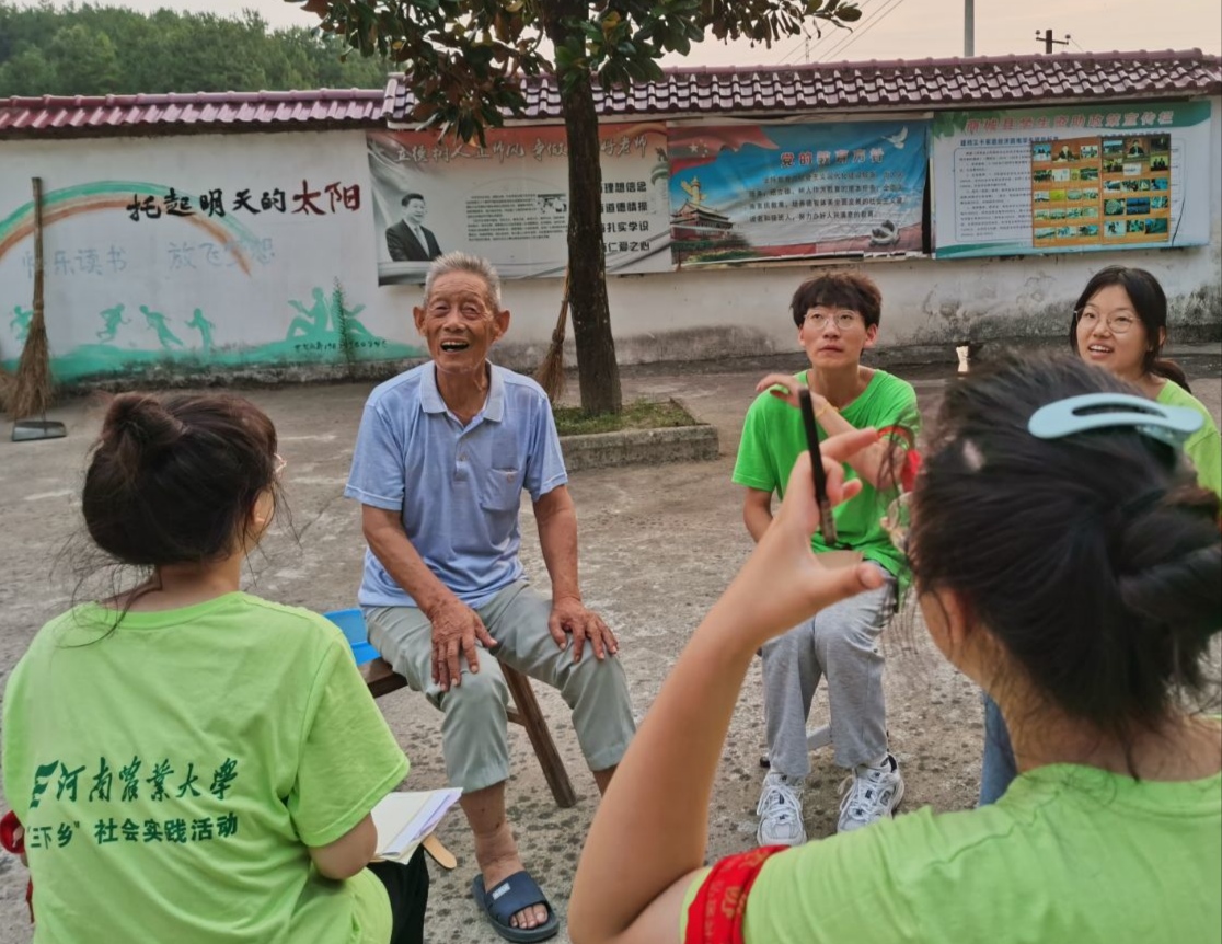 为推动当地文艺工作的开展和增强当地的文艺气氛,文艺组积极配合调研组探查当地地形地貌与风土人情,深入挖掘村内文艺骨干,与广场舞领头人、手艺人、当地小学老校长、老党员等人物代表进行访谈交流、深入学习。在与老共产党员的交谈中,他们看到了老党员对于党和对于祖国的赤诚之心,深刻感受到老一辈党员凡事讲究实事求是的作风以及为党的事业奋不顾身的精神。他们发光发热,奉献自己,为祖国和社会的发展积累了宝贵的财富,奠定下坚实的基础。