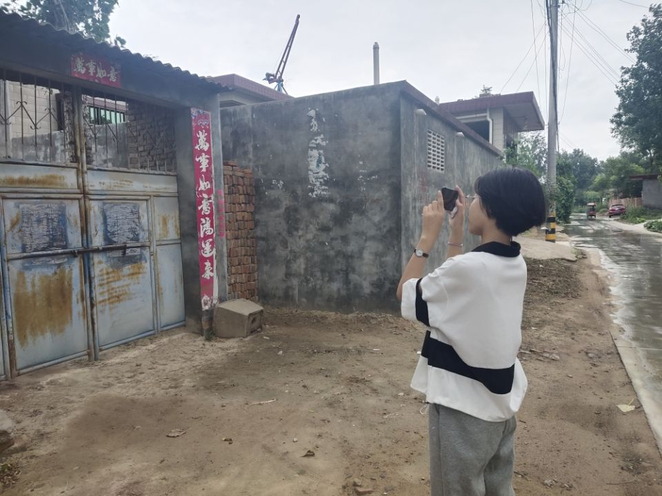 21级农机二班卢蜜雨在周口市沈丘纸店镇卢寨村考察当地环境、居民居住和出行的变化。
