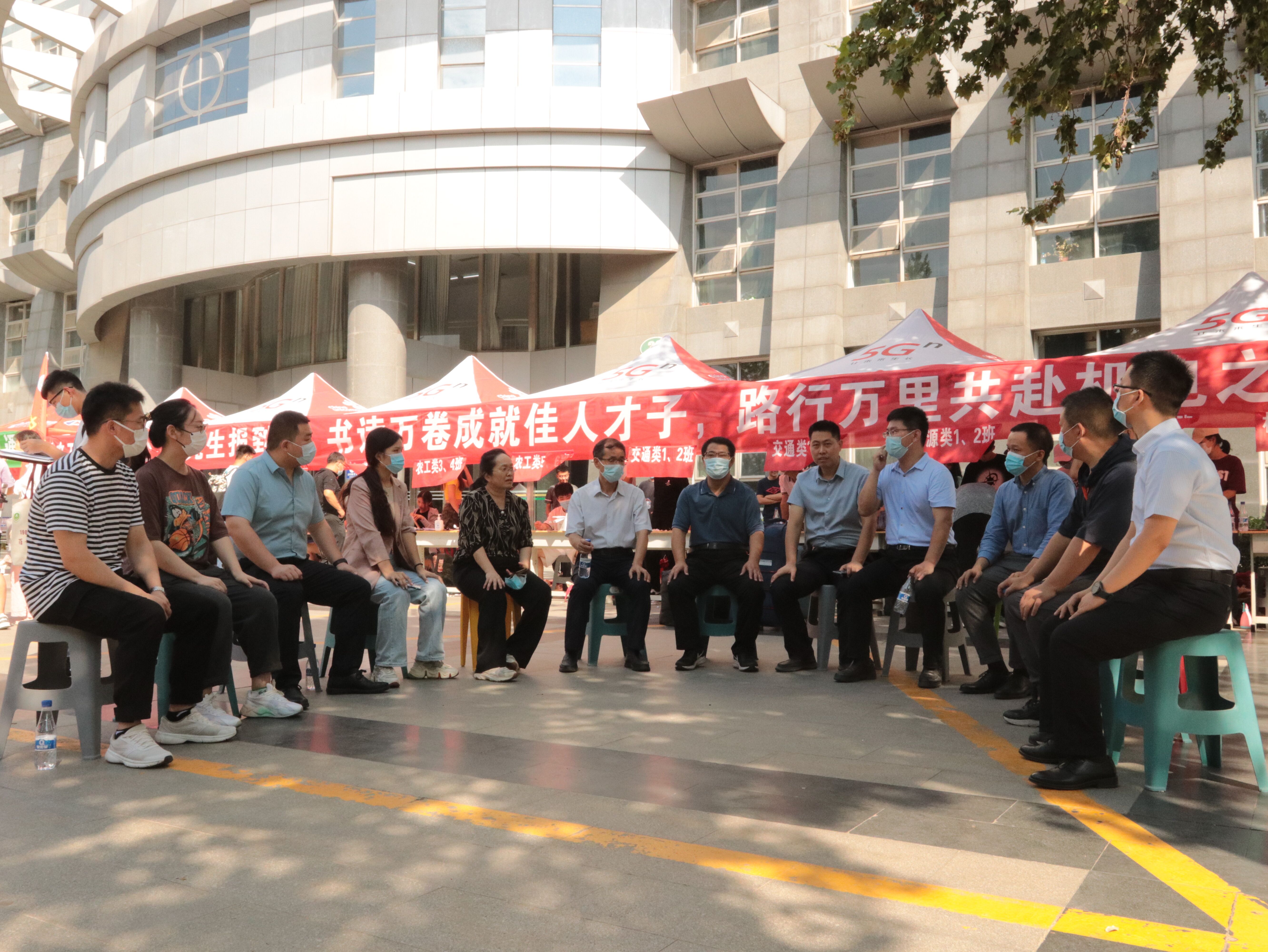 报到期间,校、院领导老师莅临现场视察新生报到工作,并亲切慰问了现场的学生工作人员、学生志愿者以及前来报到的2022级新生。同时,院领导老师现场召开新生班主任工作会,就各项新生入学工作进行商谈。会后,院领导老师一行前往新生宿舍深入关怀学生,与新生进行友好交流,并对新生的到来表示了热烈欢迎。
