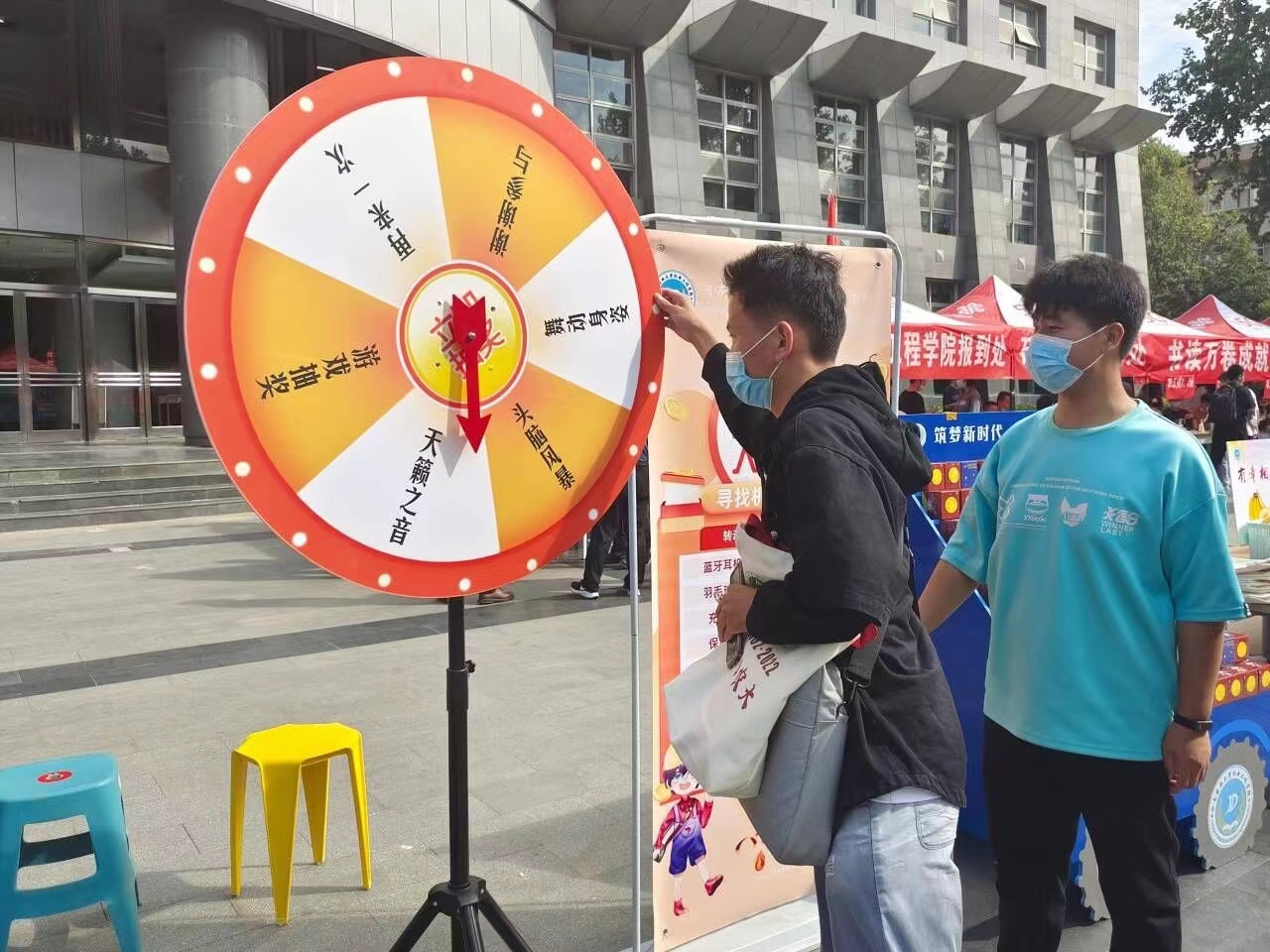 在报到地点举办迎新抽奖活动,并用心筹备中秋月饼、新鲜水果和毛绒玩偶等各种小物品作为奖品,同时,报到地点还设置了拍照打卡框,供新生进行打卡留念。红色的马甲、忙碌的身影和亲切的笑脸在校园里形成了一道美丽的风景线,温暖与感动在报到现场久久萦绕。