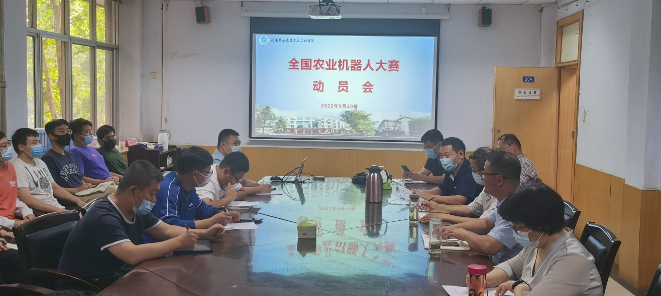 为全面培养和提升学院青年学生的创造精神、创新意识,激发学生勤奋学习、勇于创新、勇于创业、奋发成才的积极性和主动性,9月20日,色情小说网 在二楼会议室召开了2022年中国农业机器人大赛动员会。院党委书记李世欣、院长胡建军、团委书记黄笑、各参赛队伍指导老师、参赛队员参加会议。