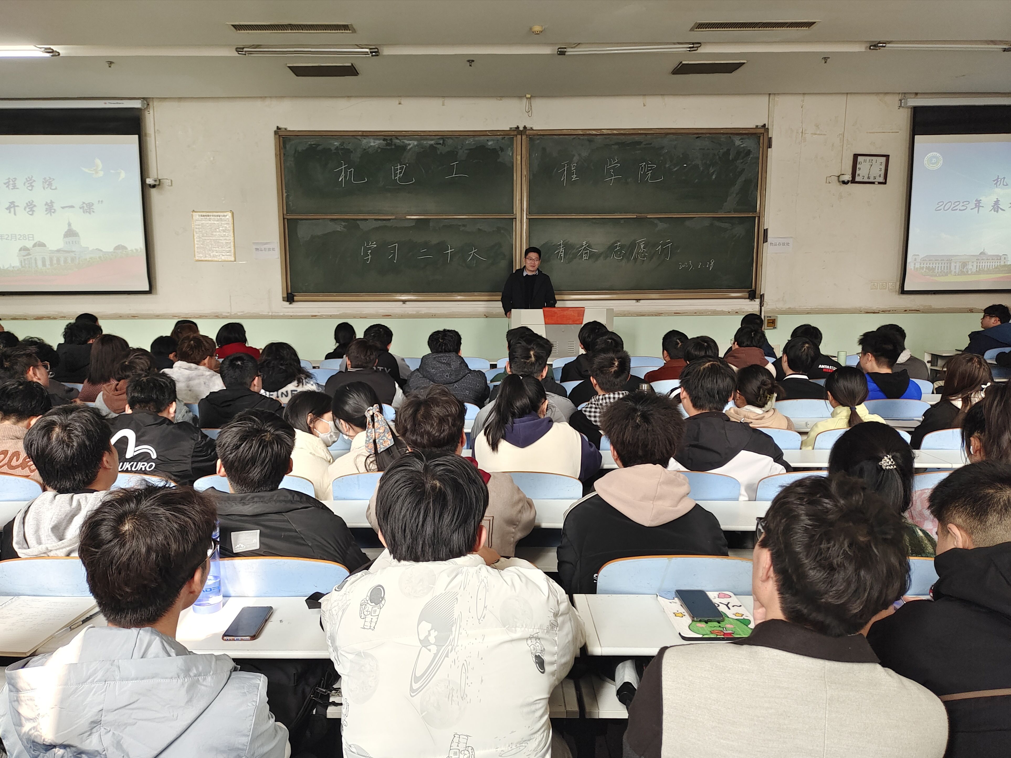 为全面落实习近平总书记关于志愿服务系列重要指示精神,引领我校广大青年凝聚志愿服务力量,2月28日中午,色情小说网 于文化路校区工程楼101教室组织开展“学习二十大,青春志愿行”主题团日活动动员大会。院党委副书记宋晶,团委书记黄笑,团委副书记徐捧丽,年级辅导员胡亭亭、王晓楠、孙改革出席本次会议,院学生组织主要成员、各年级班长支书参与本次会议。