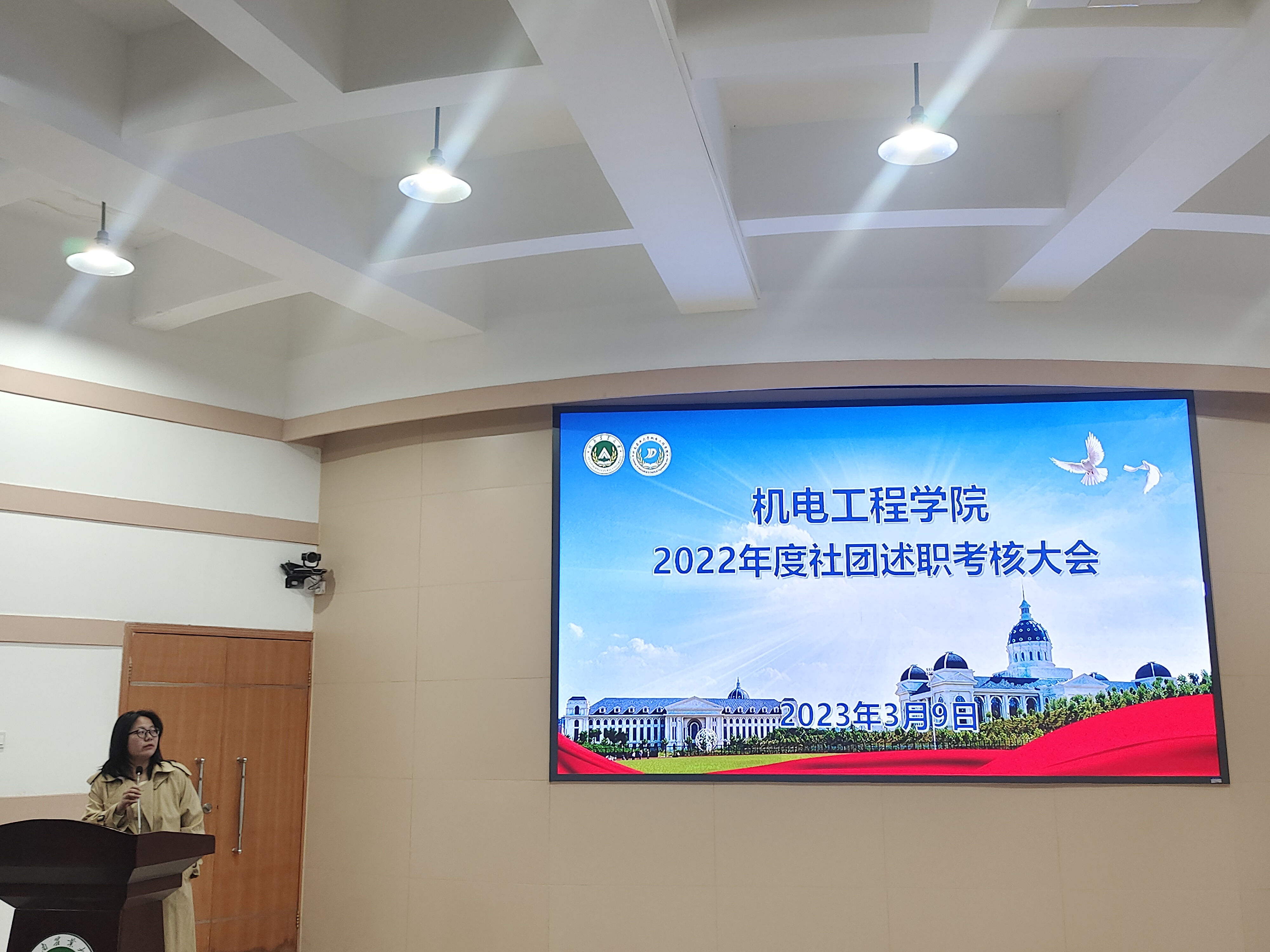 在文化路校区300人报告厅开展2022年度社团述职总结大会,年级辅导员孙改革、兼职辅导员邓文龙和学生代表参加此次会议。
