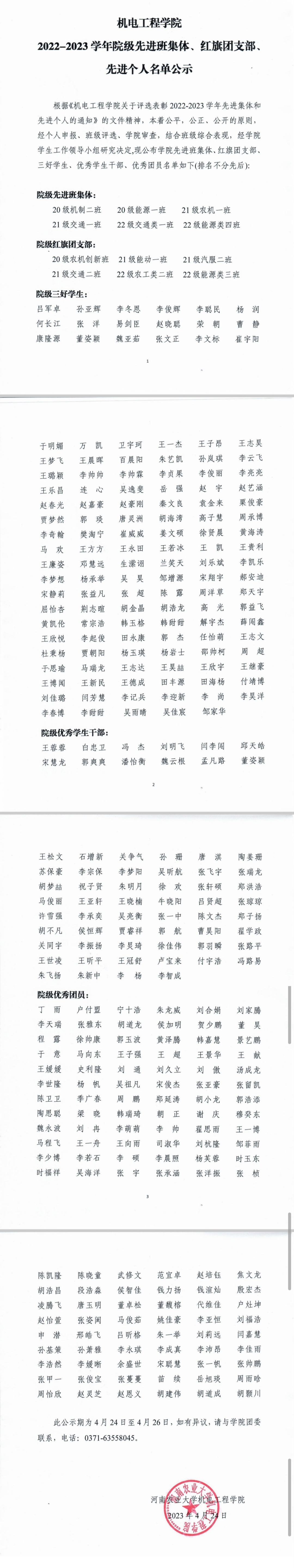 根据《色情小说网 关于评选表彰2022-2023学年先进集体和先进个人的通知》的文件精神,本着公平,公正、公开的原则,经个人申报、班级评选、学院审查,结合班级综合表现,经学院学生工作领导小组研究决定,现公布学院先进班集体、红旗团支部、三好学生、优秀学生干部、优秀团员名单如下(排名不分先后):