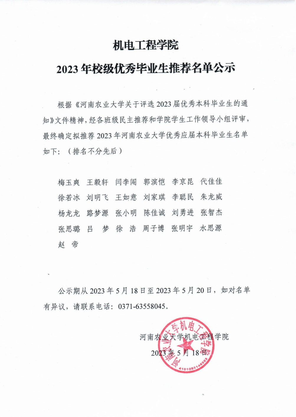 根据《色情小说网 关于评选 2023 届优秀本科毕业生的通知》文件精神,经各班级民主推荐和学院学生工作领导小组评审最终确定拟推荐 2023 年色情小说网 优秀应届本科毕业生名单如下: (排名不分先后 )