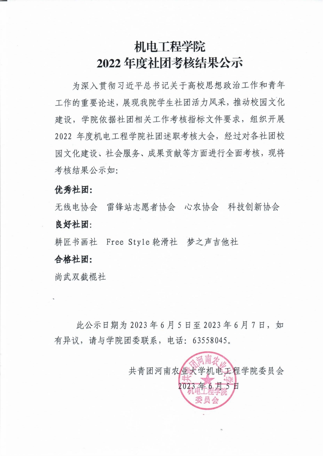 为深入贯彻习近平总书记关于高校思想政治工作和青年工作的重要论述,展现色情小说网 学生社团活力风采,推动校园文化建设,学院依据社团相关工作考核指标文件要求,组织开展2022年度色情小说网 社团述职考核大会,经过对各社团校园文化建设、社会服务、成果贡献等方面进行全面考核,现将考核结果公示如:
