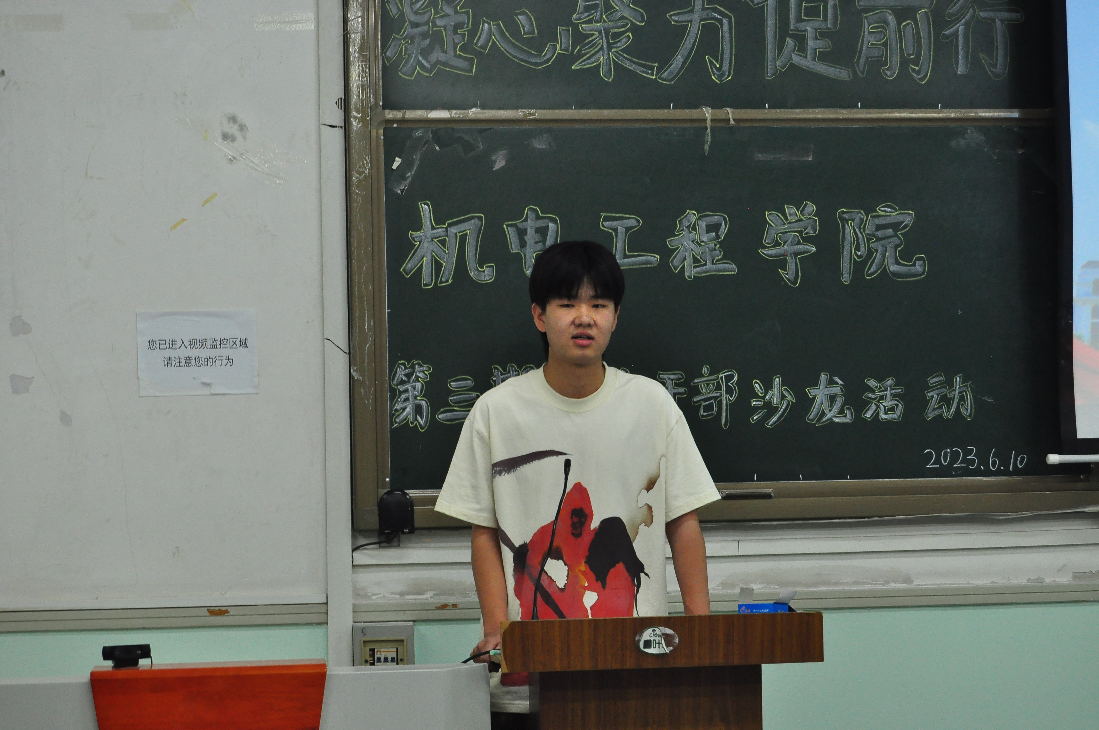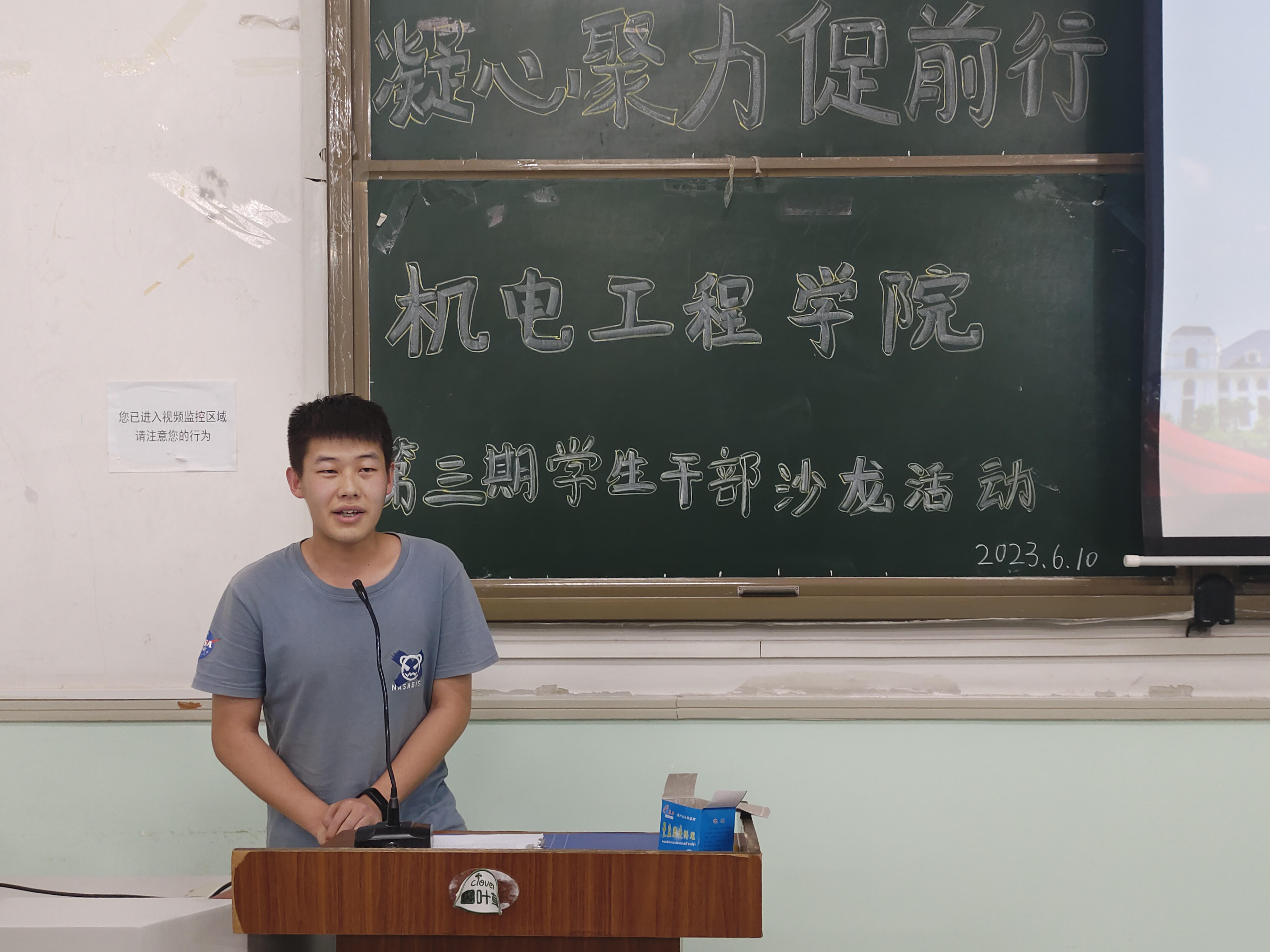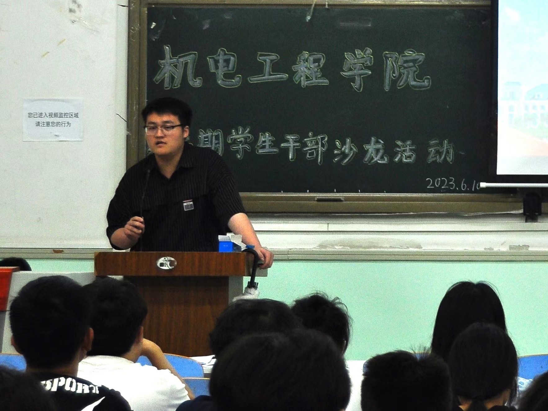 团委办公室主任郭琰,学生会副主席胡小龙、耿一帆依次发言并对本次活动进行总结。他们从亲身经历入手,分享自己在组织内的工作感悟和经验。他们认为作为学生干部,做事要主动、要用心,要加强与老师、学长学姐们的沟通,积极主动地帮助同学,服务师生,助力学院发展。并希望通过此次的沙龙活动,各学生组织能进一步优化工作方式,提高工作能力、工作效率和工作质量,加强各组织之间团结合作精神。