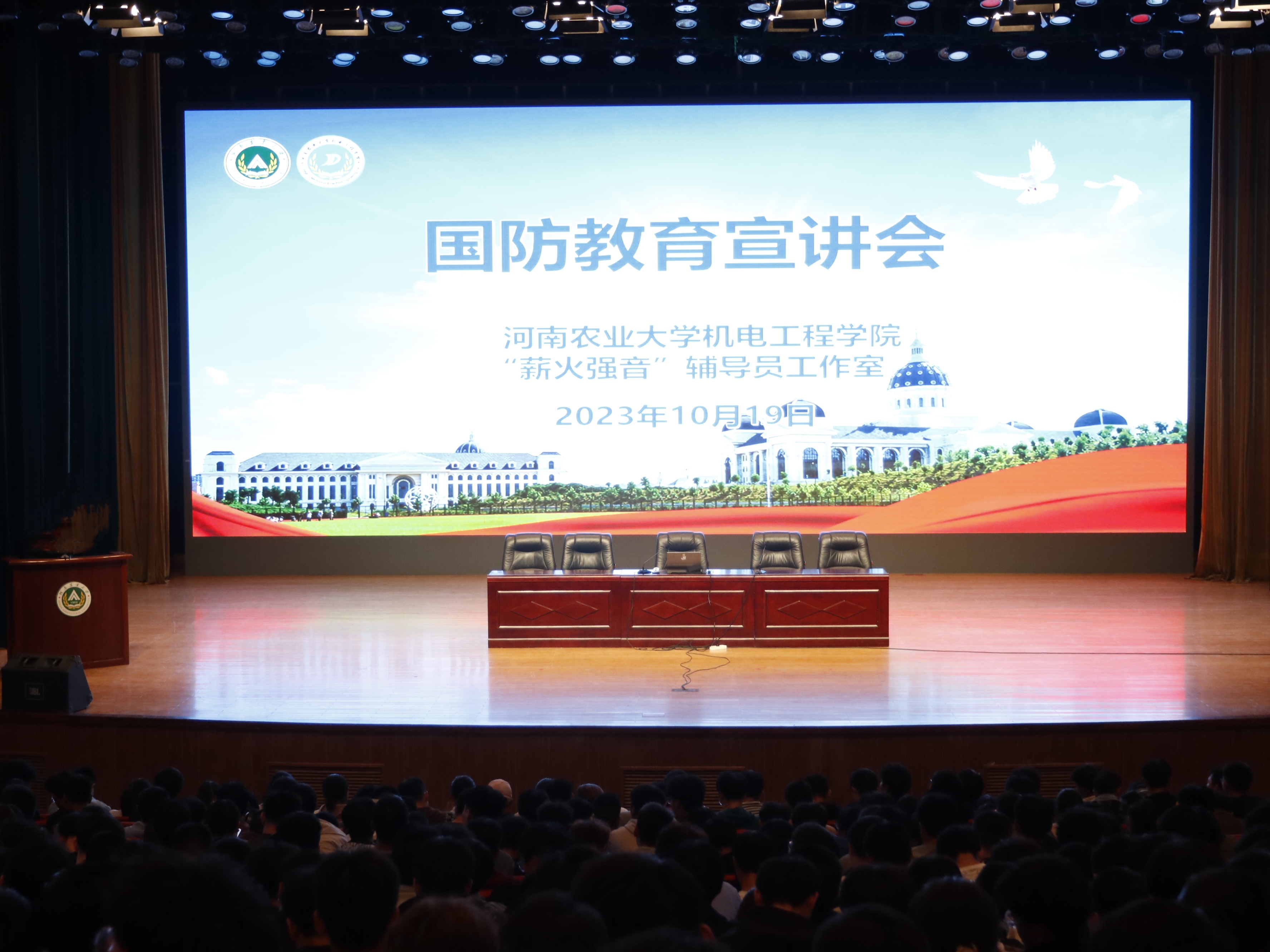 于文化路校区千人大礼堂举办国防教育宣讲会,团委副书记王晓楠、胡亭亭,年级辅导员孙改革、尚建伟出席此次大会,22级、23级全体学生参加会议。本次宣讲会由孙改革主持。