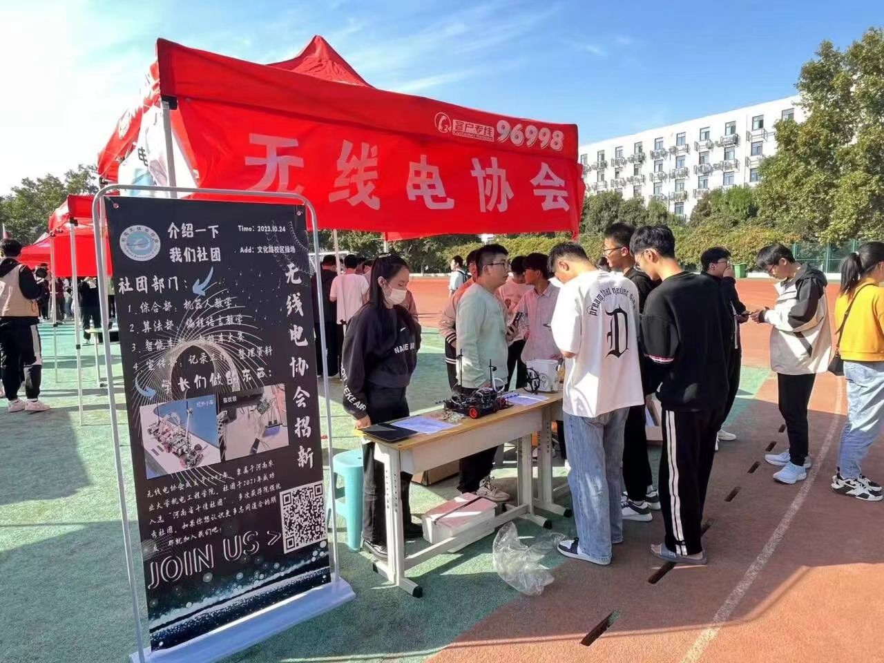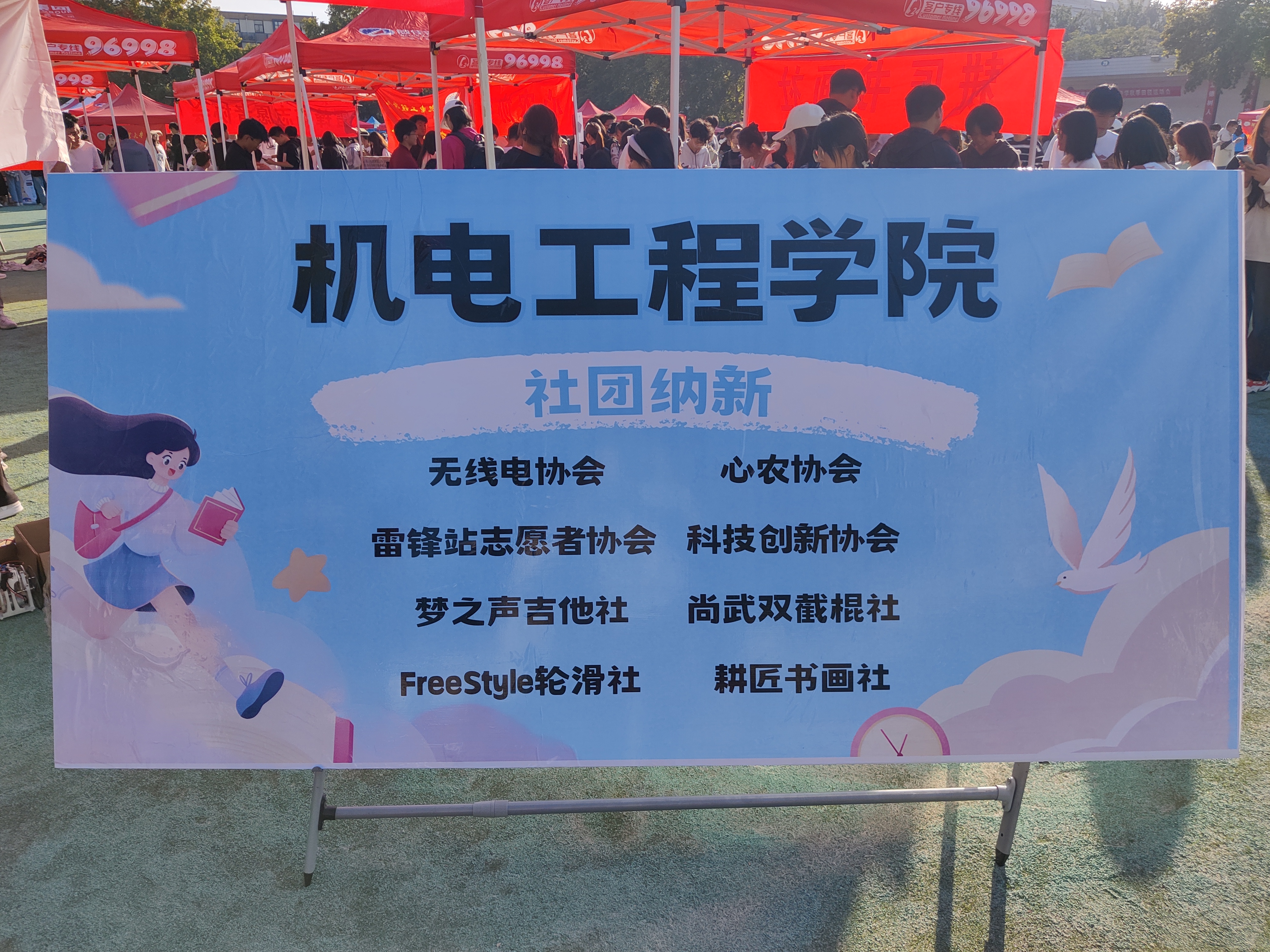 积极响应,院雷锋站志协、科创协会、无线电协会、心农协会、FreeStyle轮滑社、梦之声吉他社、耕匠书画社、尚武双截棍社团参加活动,吸引了大批2023级新生前来参加。
