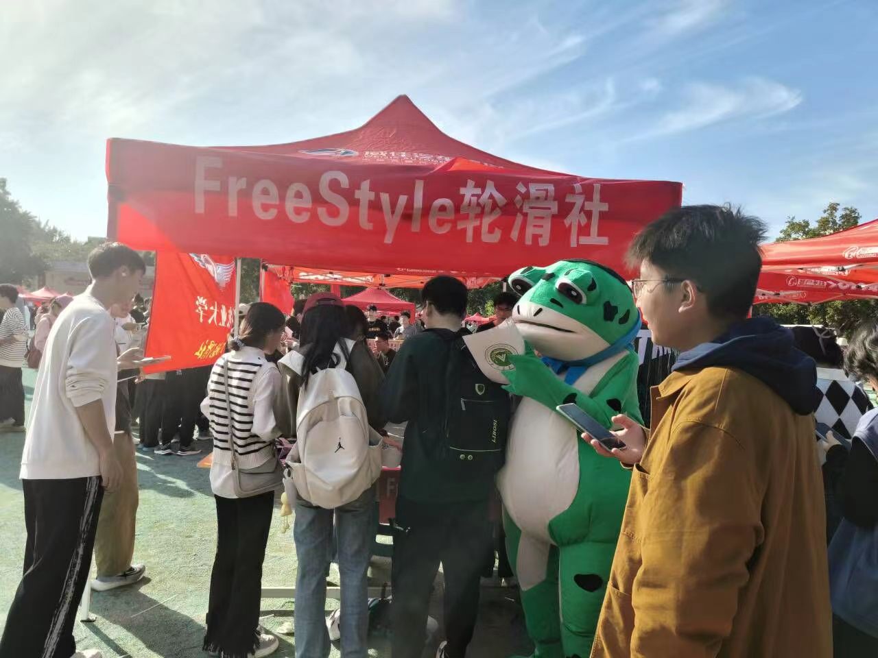活动现场,各社团自行准备各自特色的表演、宣传海报等,通过“百团大战”这个平台展示各自社团的风采和魅力。科创协会、无线电协会花样“炫技”,展现各自社团的创新成果,雷锋站协会、梦之声吉他社展现了别样的青春活力,FreeStyle轮滑社展现出社团同学“运动正青春”的快乐日常……