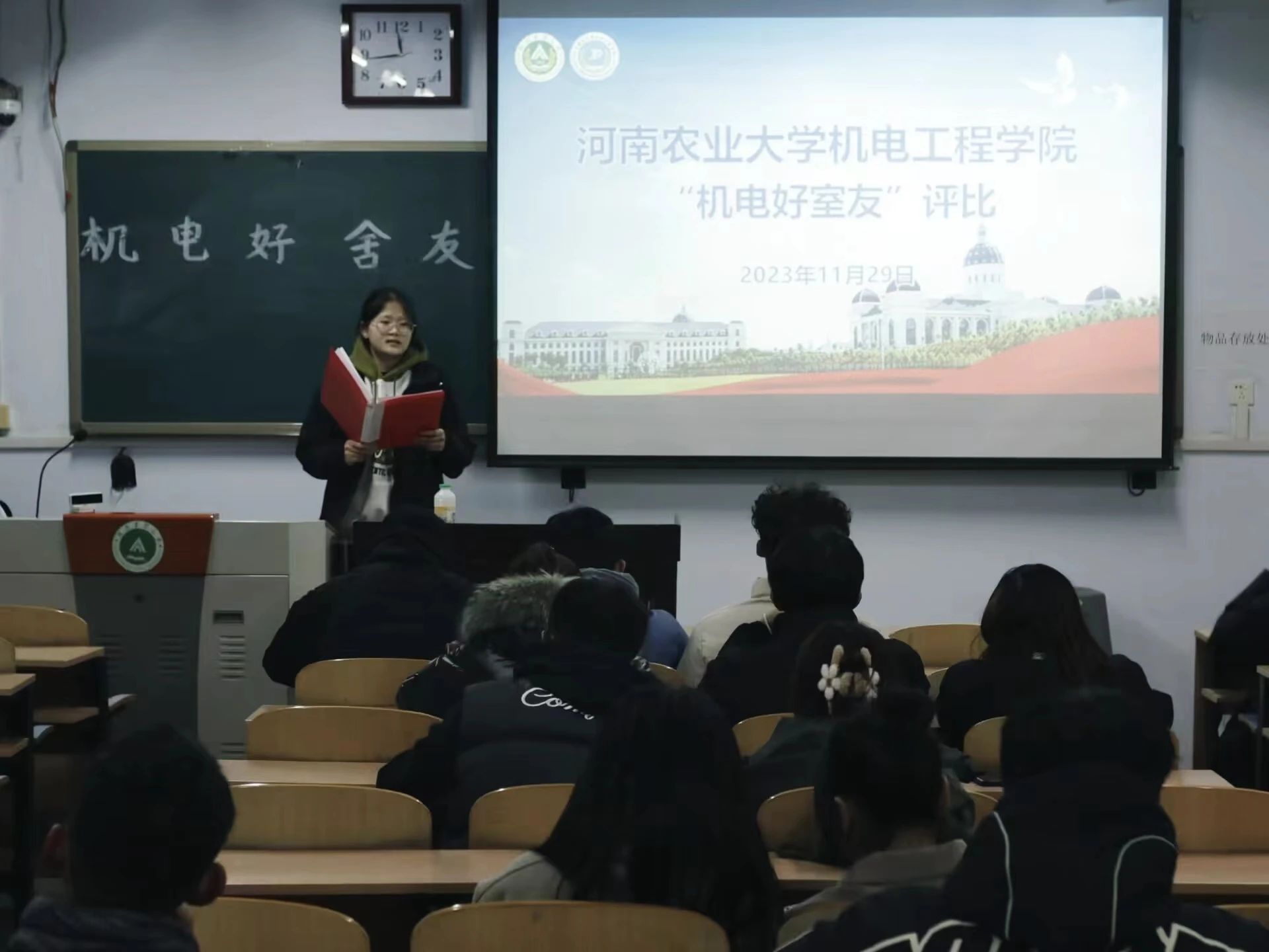 于文化路校区三号楼401、402教室开展“机电好室友”、“优秀寝室长”评选活动。