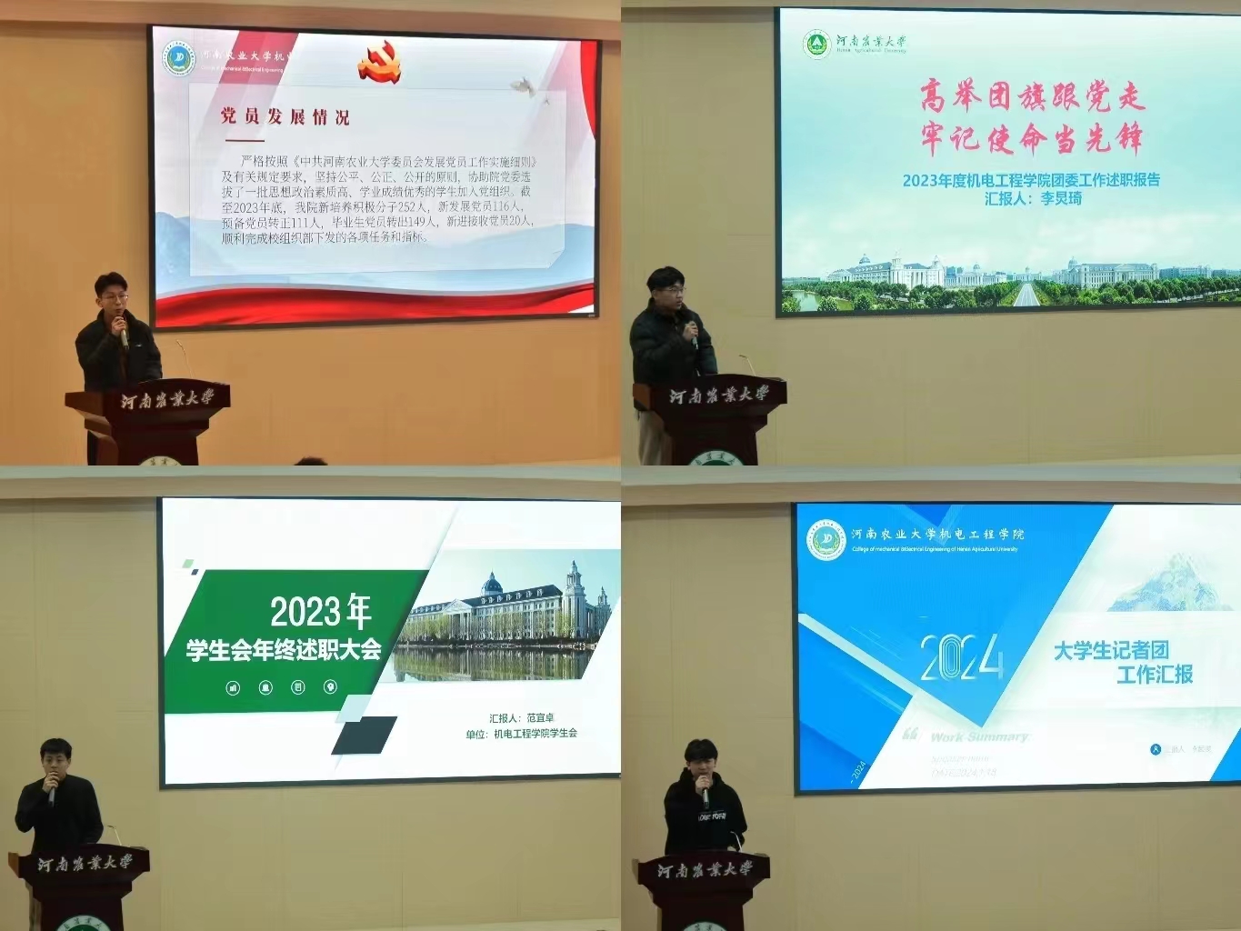 党建办公室、团委、学生会、大学生记者团各部门的负责人依次上台对2023年度工作做述职汇报。首先,各学生组织部门负责人结合2023年工作情况进行总结,围绕工作内容、工作成果、存在的问题和不足三个方面对部门工作进行了认真梳理和总结,并对下学期部门工作进行了细致的规划部署。随后,学生组织的负责人作出汇报总结,他们对学生组织内部成员长期以来的工作予以充分的肯定并表达感谢,强调学生组织全体成员应强化协调配合,增强团队凝聚力,在新学年继续保持认真负责的工作态度,平衡好学习与工作的关系,为色情小说网