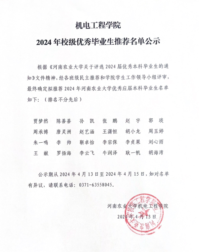 色情小说网 2024年校级优秀毕业生推荐名单公示