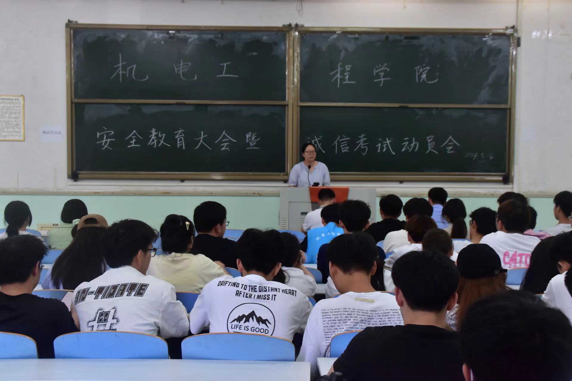 于文化路校区工程楼101教室召开安全教育大会暨诚信考试动员会,院团委书记黄笑,团委副书记王晓楠及年级辅导员孙改革出席此次会议,全体班长支书、团委四大组织成员和研究生各年级负责干部参加会议。