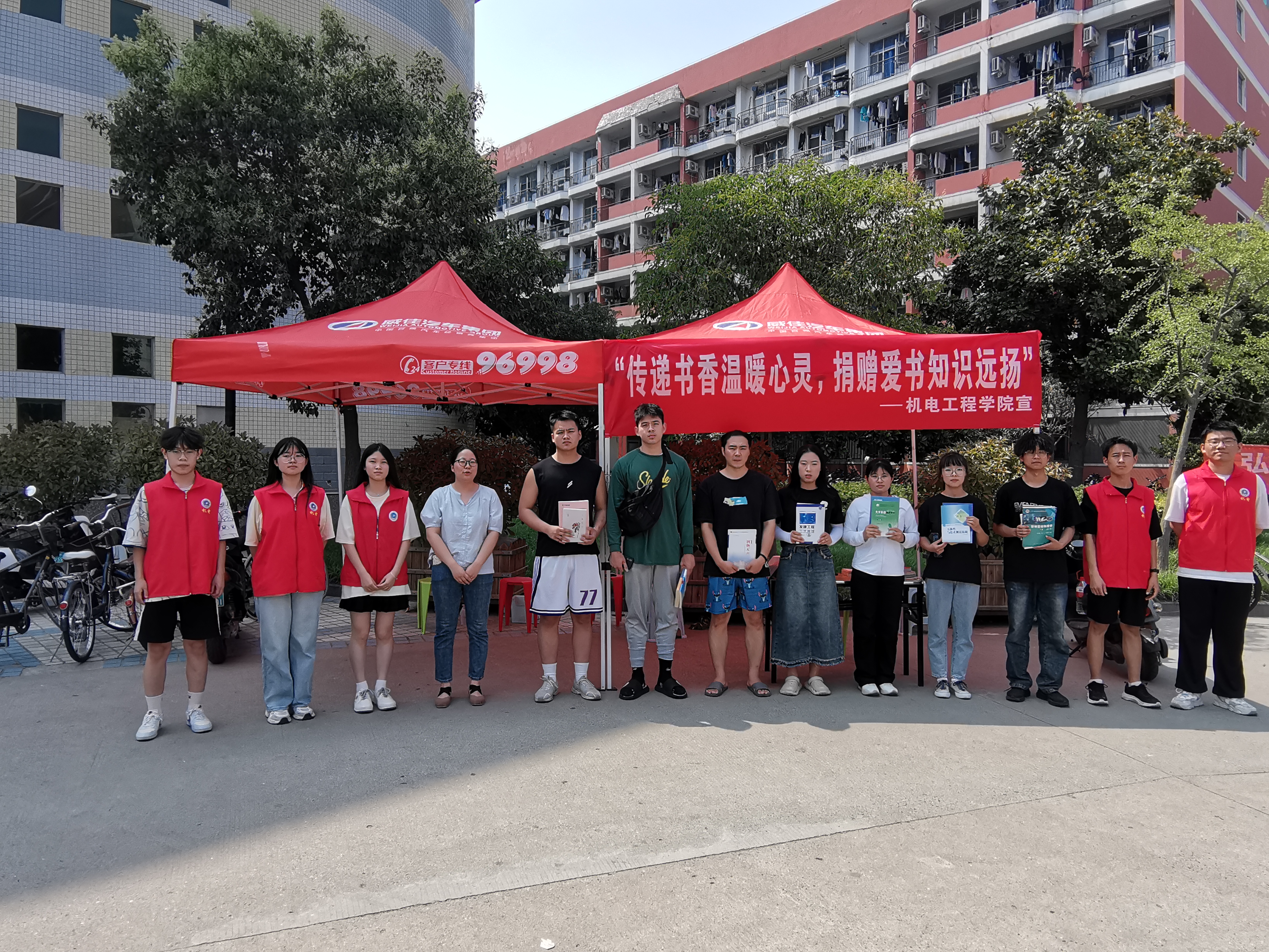 于桃李园学生公寓餐厅门口举办“传递书香温暖心灵,捐赠爱书知识远扬”毕业生捐书活动,年纪辅导员孙改革到现场参加并进行指导。