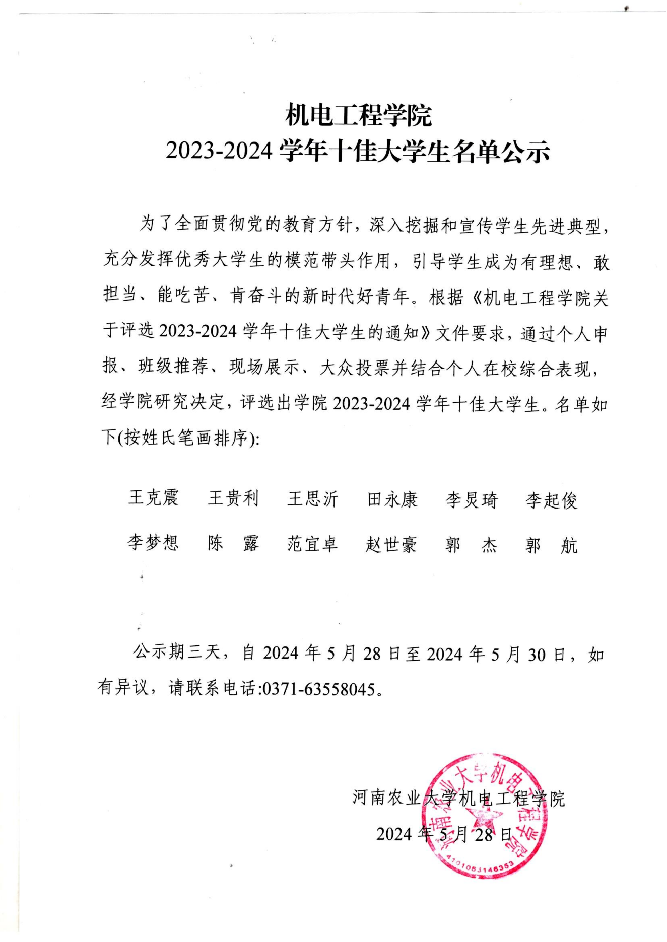 为了全面贯彻党的教育方针,深入挖掘和宣传学生先进典型,充分发挥优秀大学生的模范带头作用,引导学生成为有理想‘’敢担当、能吃苦、肯奋斗的新时代好青年。根据《色情小说网 关 于评选2023-2024学年十佳大学生的通知》文件要求,通过个人申报、班级推荐、现场展示、大众投票并结合个人在校综合表现,经学院研究决定,评选出学院2023-2024学年十佳大学生。名单如下(按姓氏笔画排序):