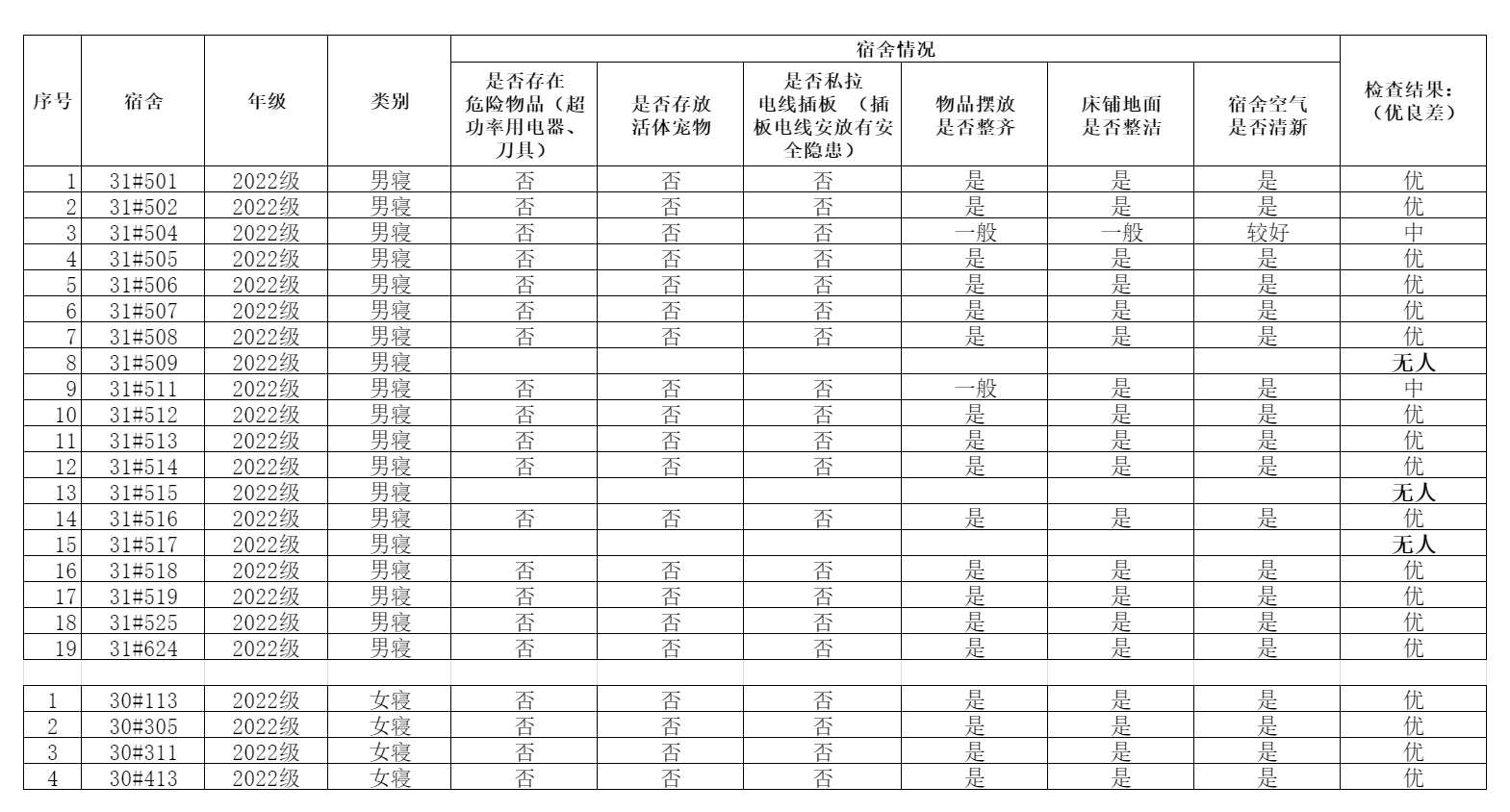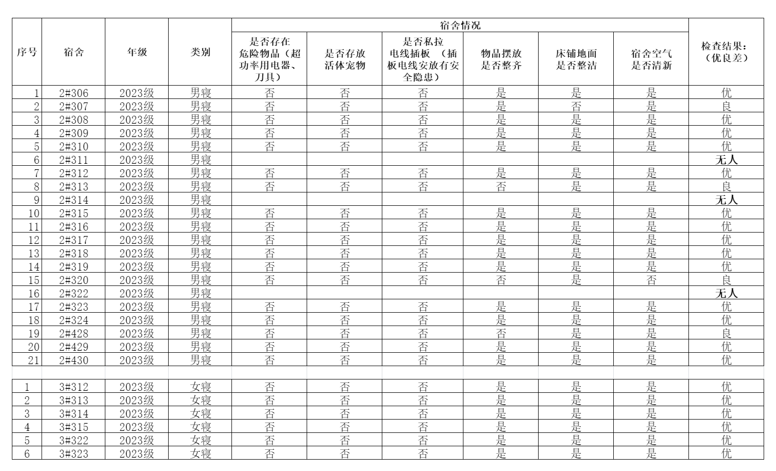 学院研究生会生活部对22、23级宿舍卫生安全检查情况公示如下: