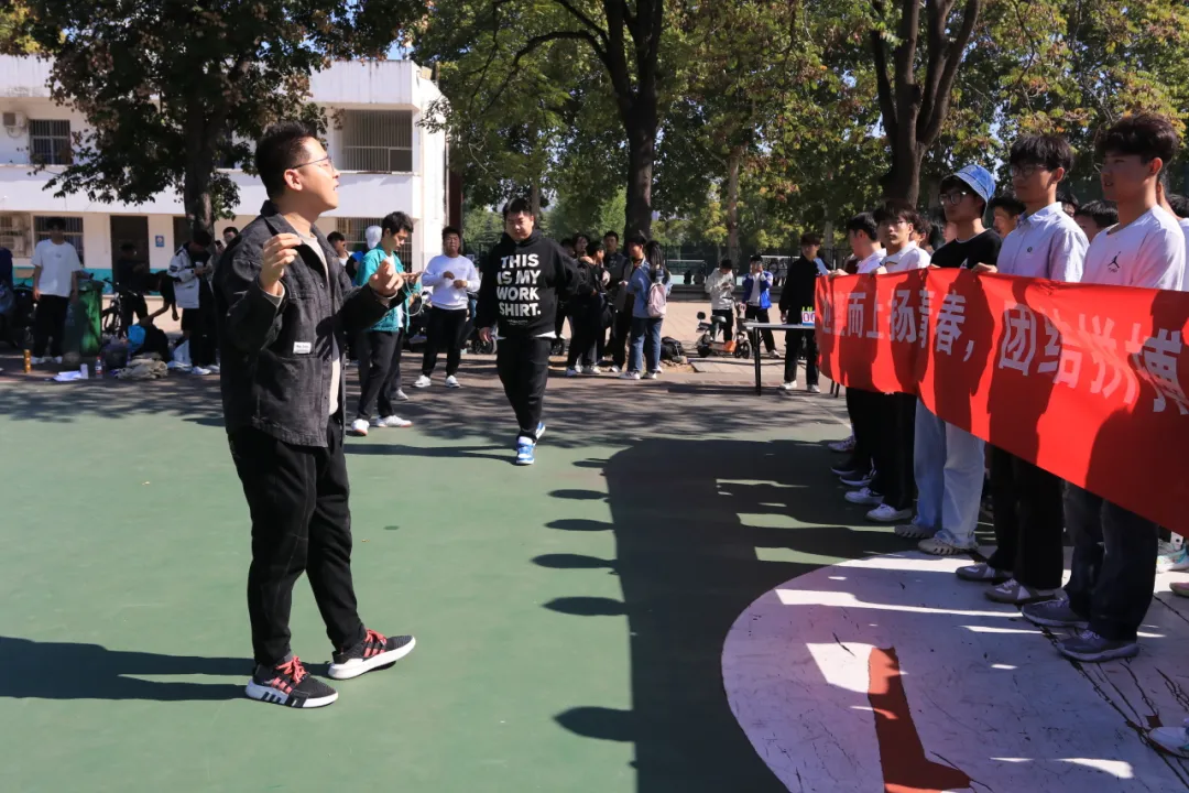 于文化路校区操场举办“激情飞扬,篮动青春”迎新杯篮球赛。比赛期间院团委副书记胡亭亭、24级年级辅导员梁凯凯以及各班助班到现场观看比赛,为参赛人员加油打气。本次篮球赛由院学生会体育部统一组织策划并进行裁判。