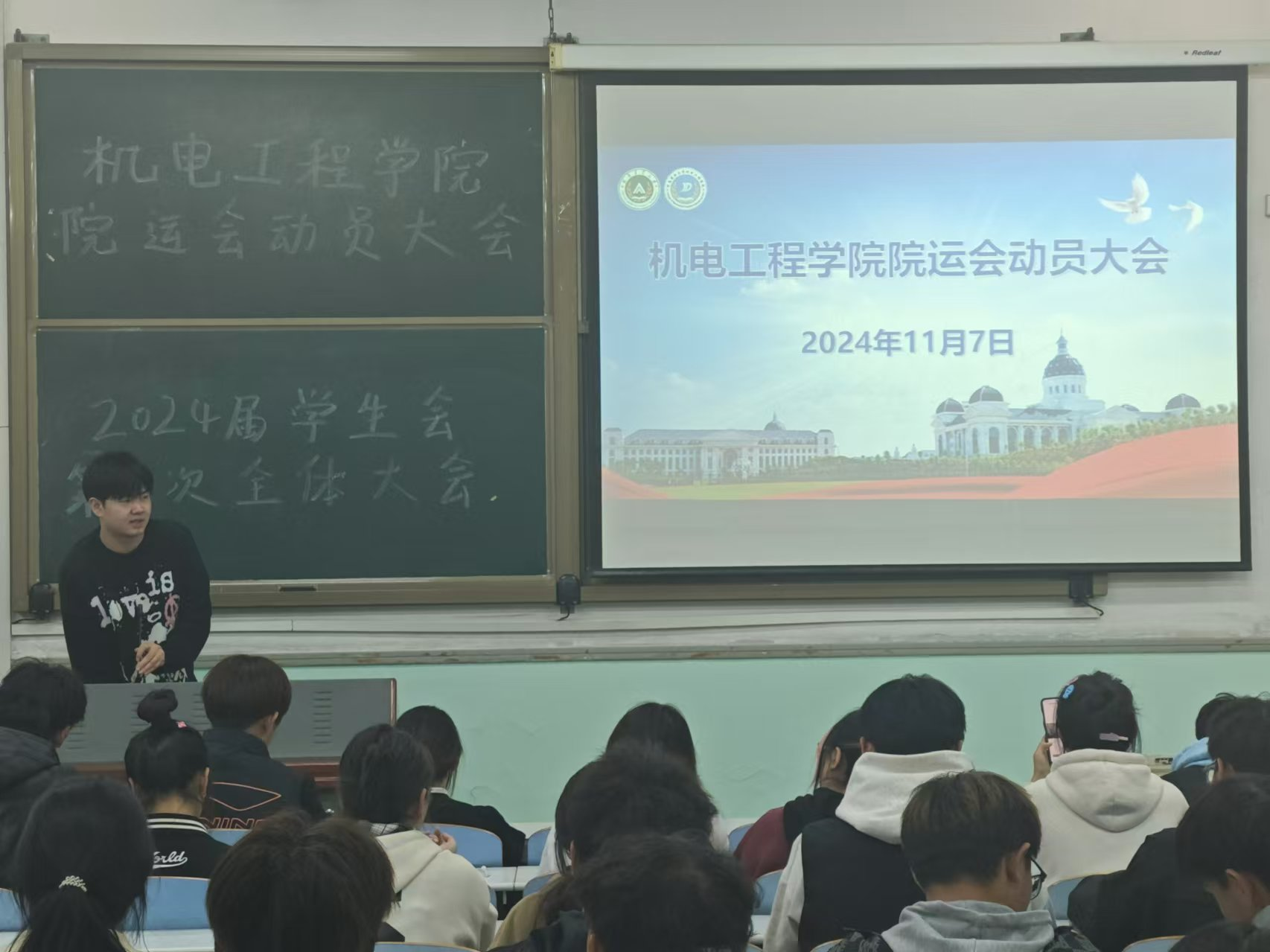 大会开场,学生会办公室负责人徐佳伟强调了院运会的重要性,并播放往届精彩的视频,展现了运动员的风采与筹备的艰辛,令成员们明晰流程、积累经验、明确目标,充分调动起成员们的积极性。