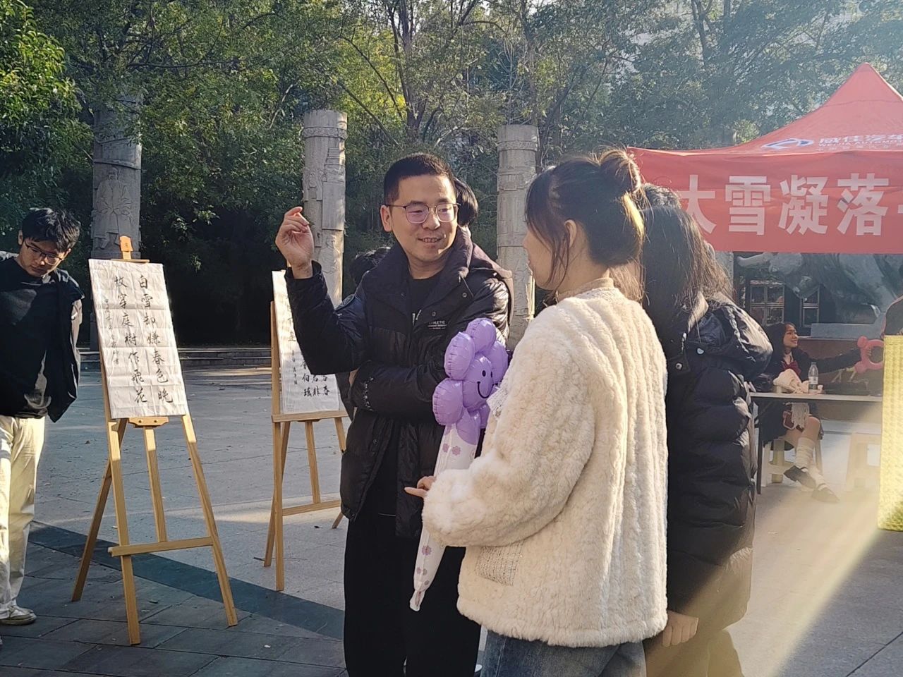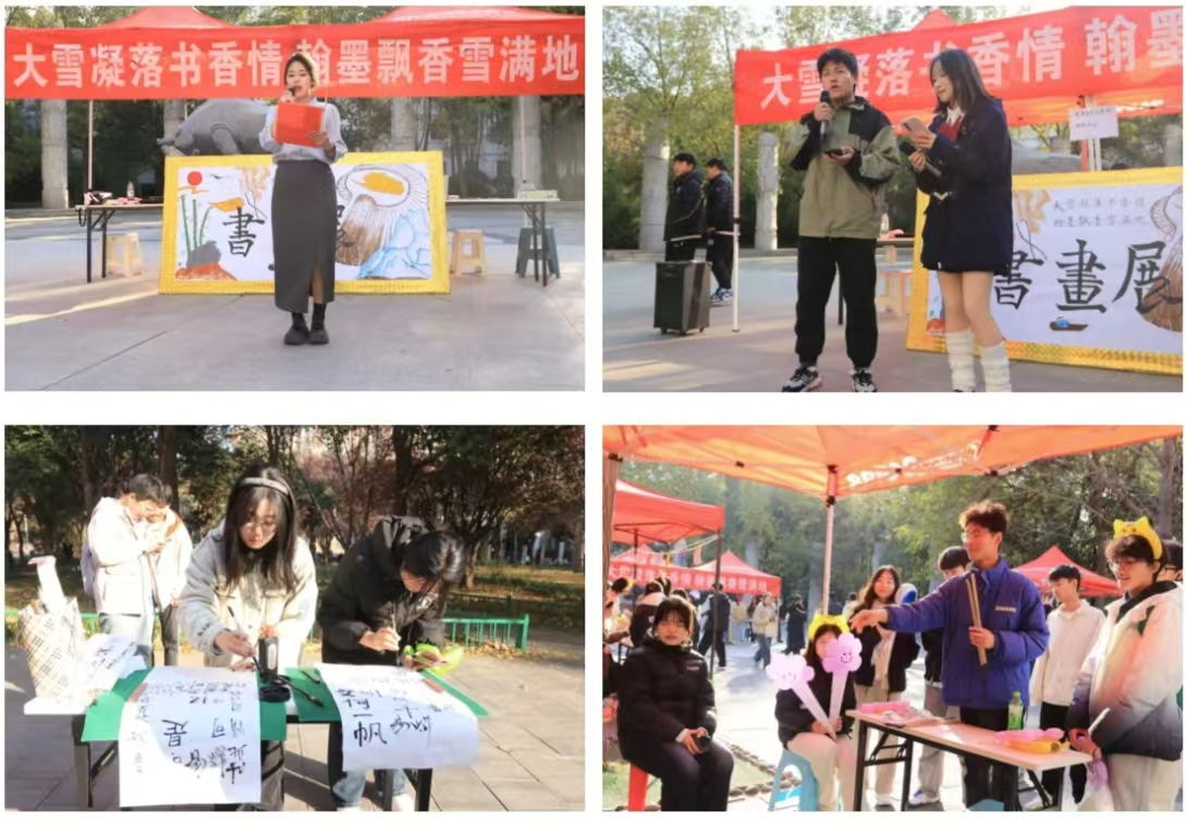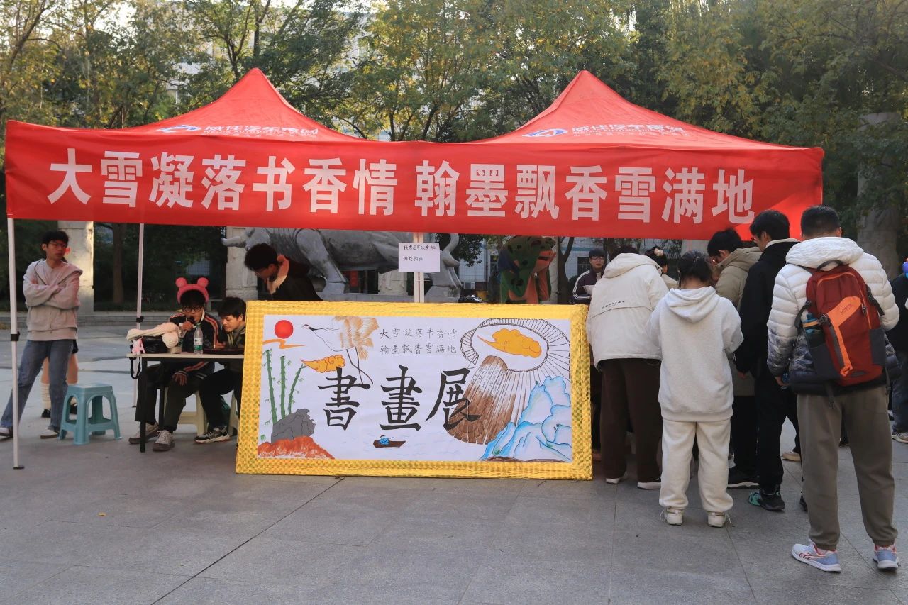 于牧医广场举办了“大雪凝落书香情,翰墨飘香雪满地”主题书画展。此次活动恰逢大雪节气,旨在引领同学们于墨韵中感受自然与人文的交融,为寒冬增添文化亮色。