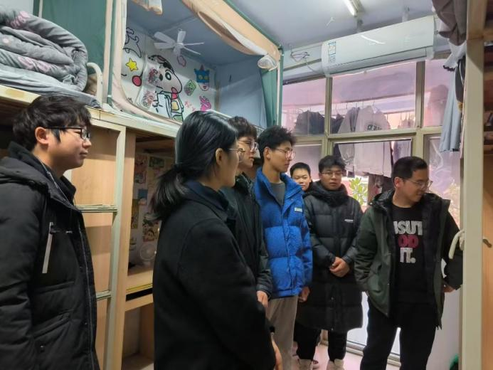线下走访期间,团委副书记胡亭亭、年级辅导员梁凯凯深入宿舍参观指导。老师们对精美手工挂件、创意涂鸦、生机盎然的植物等装饰亮点称赞有加,同时也针对空间利用、收纳及生活困扰,如作息、人际问题耐心答疑解惑。宿舍成员热情礼貌,积极介绍自己宿舍并认真回答老师问题,充分体现了同学们对良好生活环境的向往与热情,以及共创美好机电的决心与信心。