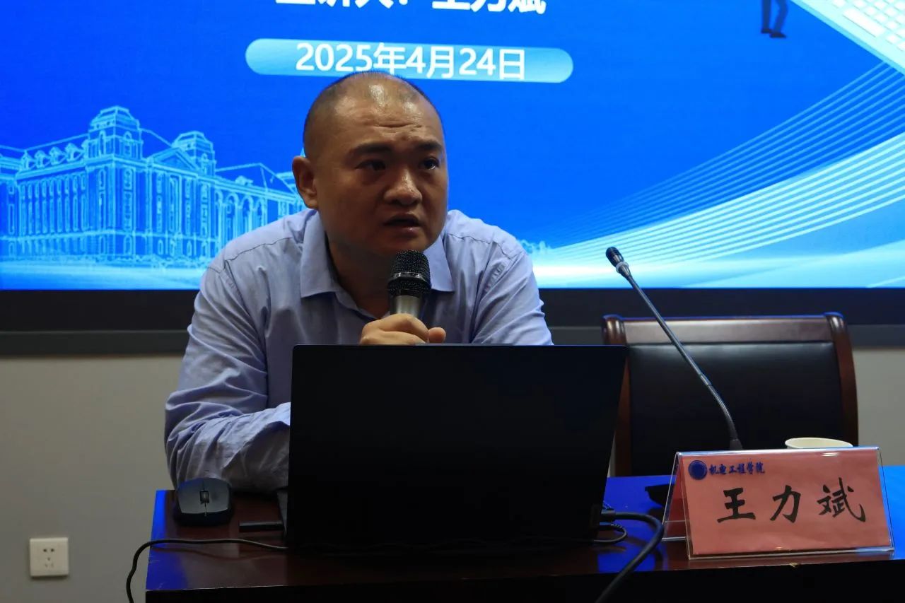 交流会上王力斌分别从大赛简介与目标,宣讲内容概览,项目计划书与PPT制作,大赛流程与策略,总结与展望五个方面展开讲解。他重点阐明大赛的重要性并提出备赛策略,深入解析赛程阶段与评分标准,传授制作PPT技巧。此外,还对未来可能的产业命题赛道给出了参与建议,鼓励学生通过实战提升创新与团队协作能力。最后,王力斌祝愿机电学院所有团队能够在大赛上取得优异成绩。