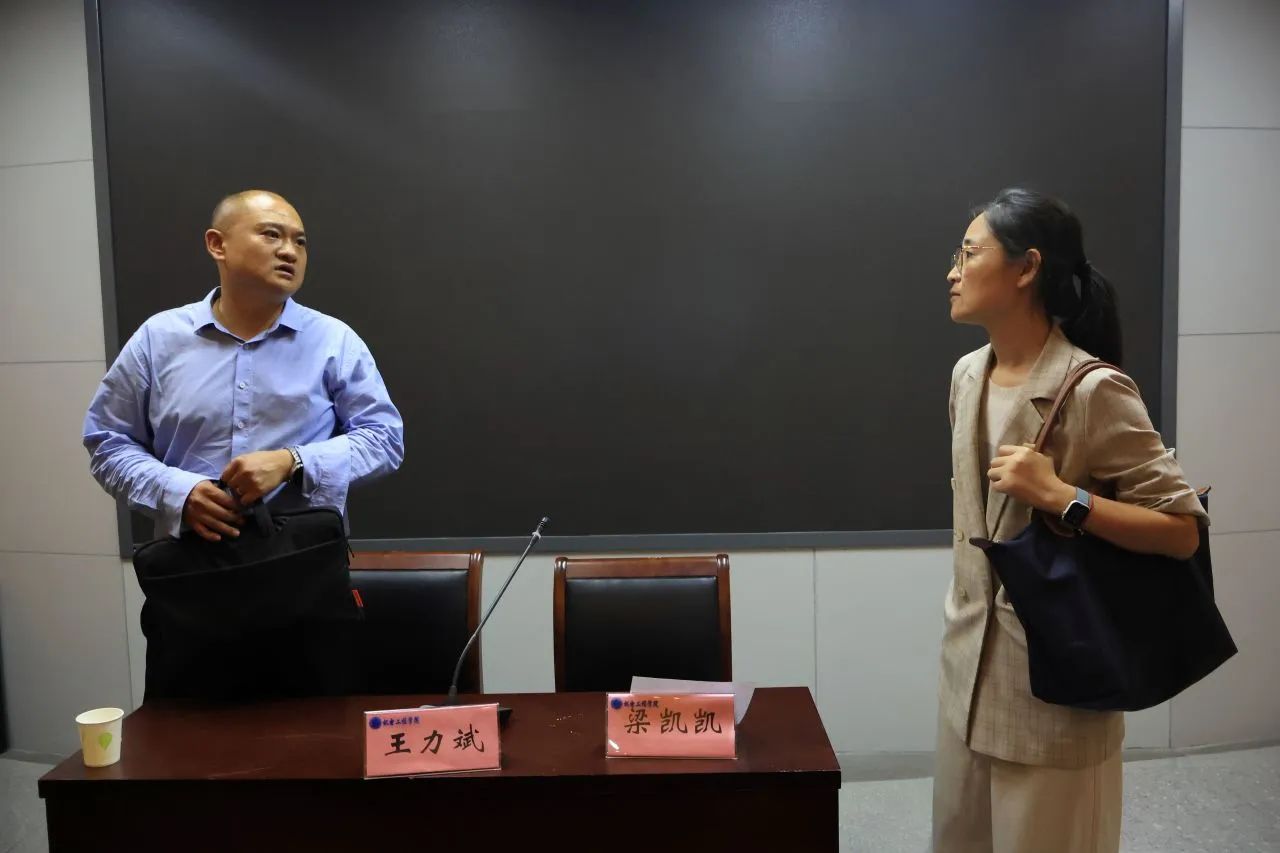会后,项目指导老师张志萍与王力斌从大赛项目的创新点如何更好地展现、项目实践的难点切入等方面,对此次项目备赛进行了深度沟通交流。
