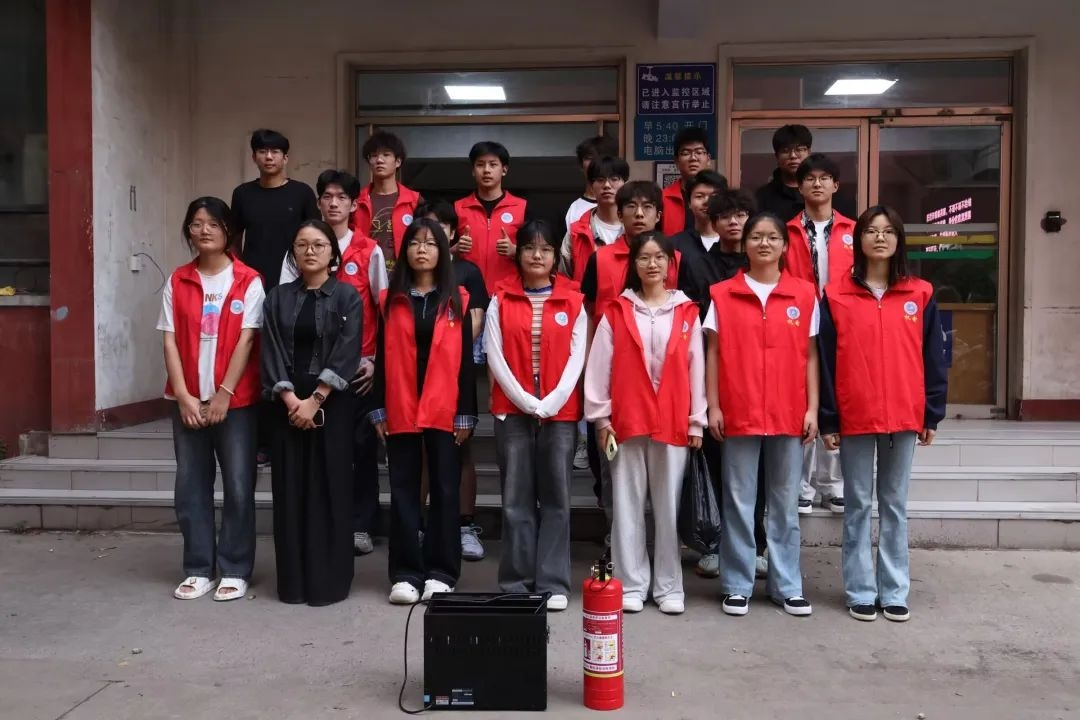 傍晚时分则聚焦宿舍场景,由学生会成员主导教学。学生会成员化身“安全讲解员”在宿舍楼下。他们不仅对灭火器、灭火毯等装备进行二次实操强化,更结合宿舍用电隐患、狭小空间逃生难点等实际情况,分享安全用电规范、不同火灾场景下的自救互救技巧,着重提醒违规电器使用、私拉电线等行为的危害性。同时,活动还预告了后续消防演练计划,邀请同学们在模拟火场中深化实践能力。