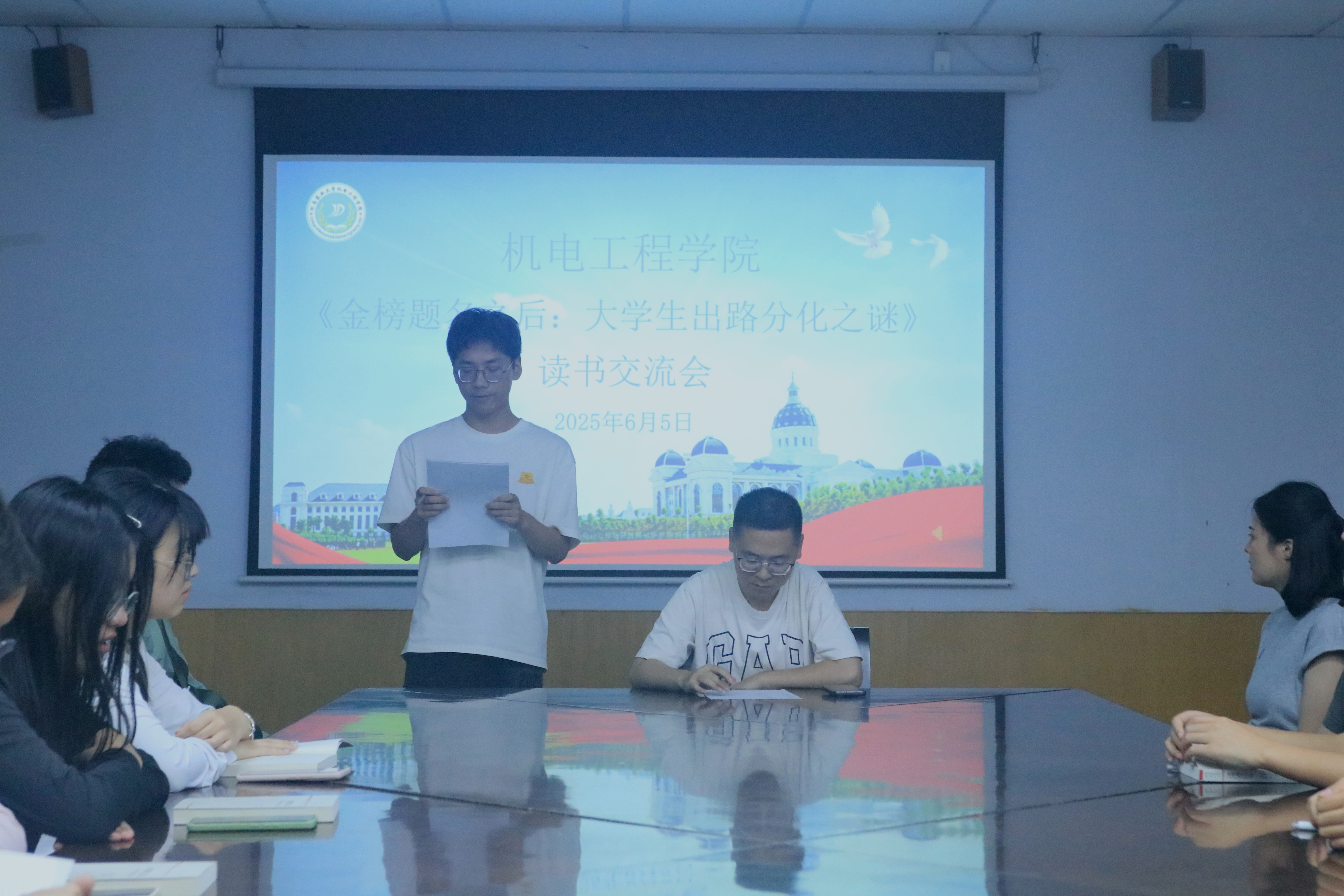 于文化路校区15号楼会议室举办第六期《金榜题名之后:大学生出路分化之谜》读书交流会。本次活动由心农协会主持,院年级辅导员梁凯凯出席,21级、22级退役复学同学及24级班级代表参加。