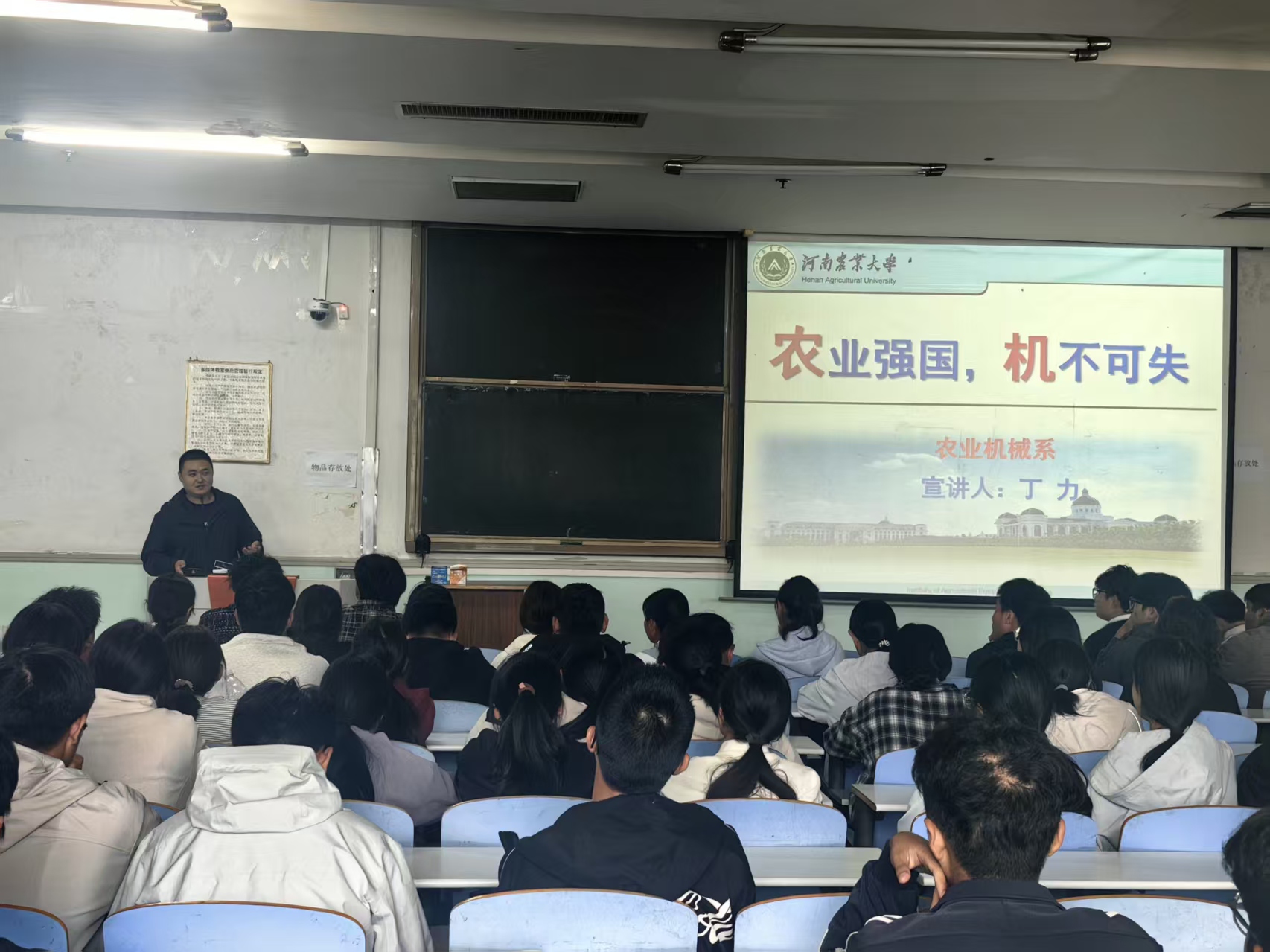 在文化路校区工程楼举办2025级新生专业思想教育大会。各系新生积极参与,其中农业机械系由丁力老师主讲,能源工程系由路朝阳老师主讲,交通运输系由王恒老师主讲,机械工程系由刘晓潺老师主讲,电气工程系由李兰兰老师主讲,大会由新生助理班主任主持。